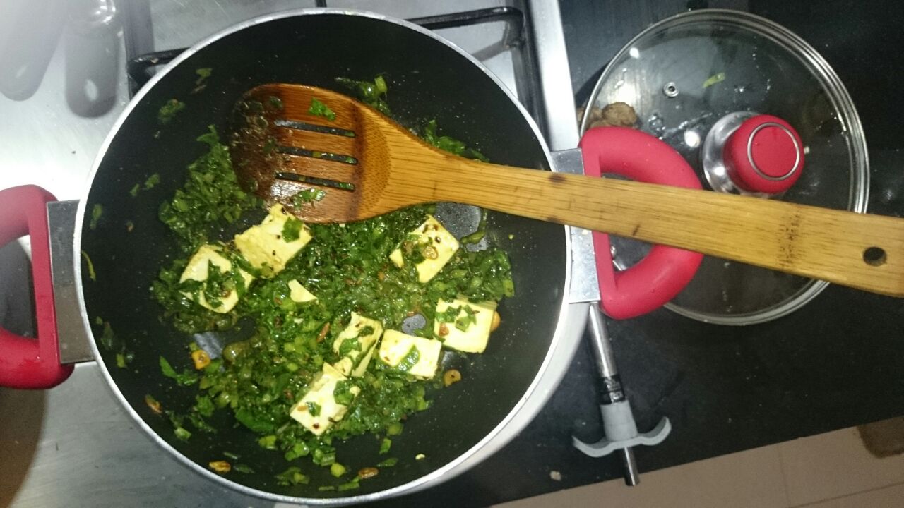 So guys this is a recipe for you if you bored  with the regular palak paneer which you have had for ages now, if you are a vegetarian and in love with paneer ( as if you really have a choice ), if you gyming and have to have green leafy vegetable in the meals, if you are dieting and wish to skip a chapati meal, if you want to add variety to your palak paneer dish…more importantly for all those lovely women who are always racing against the time to make something quickly.