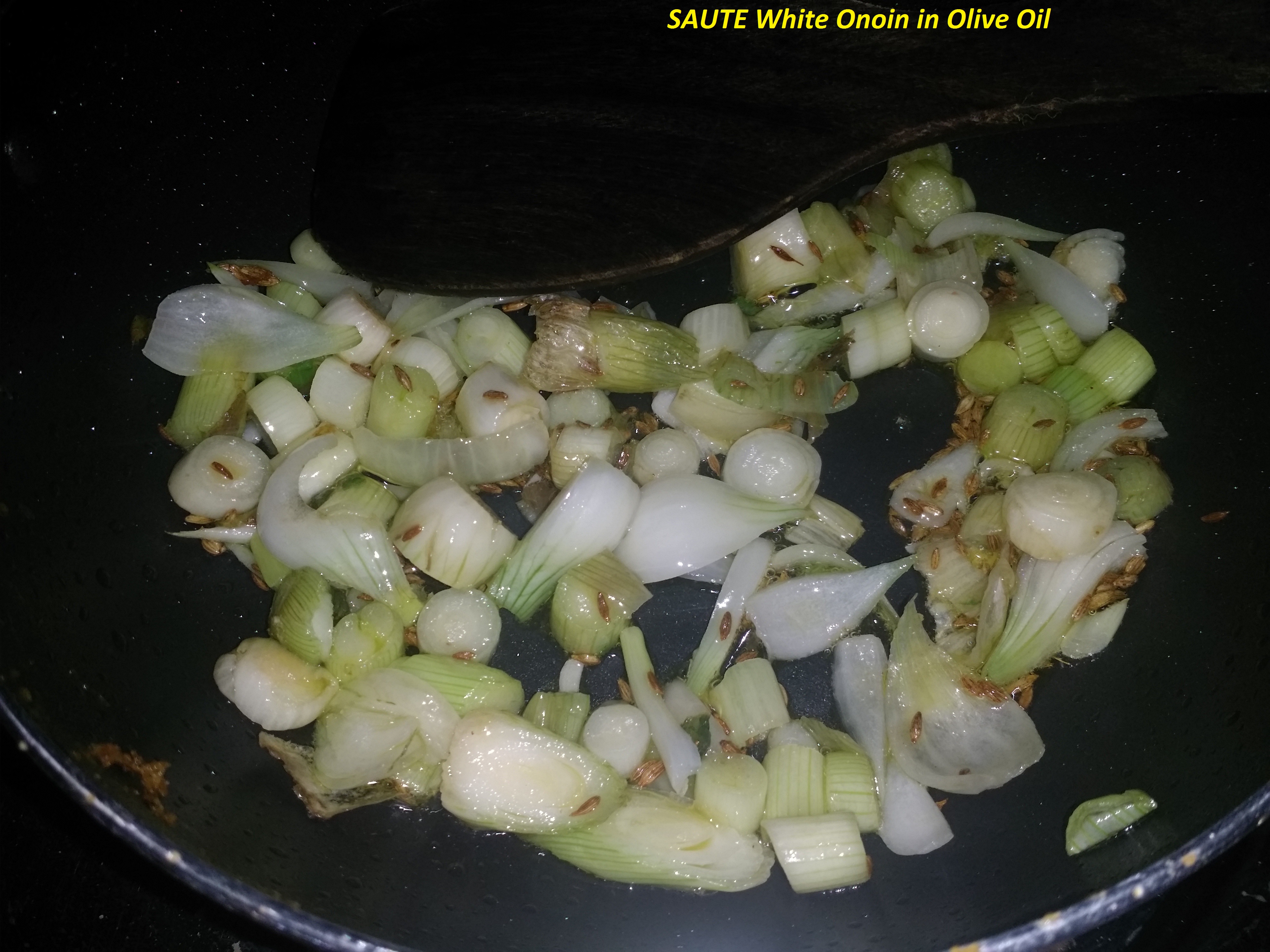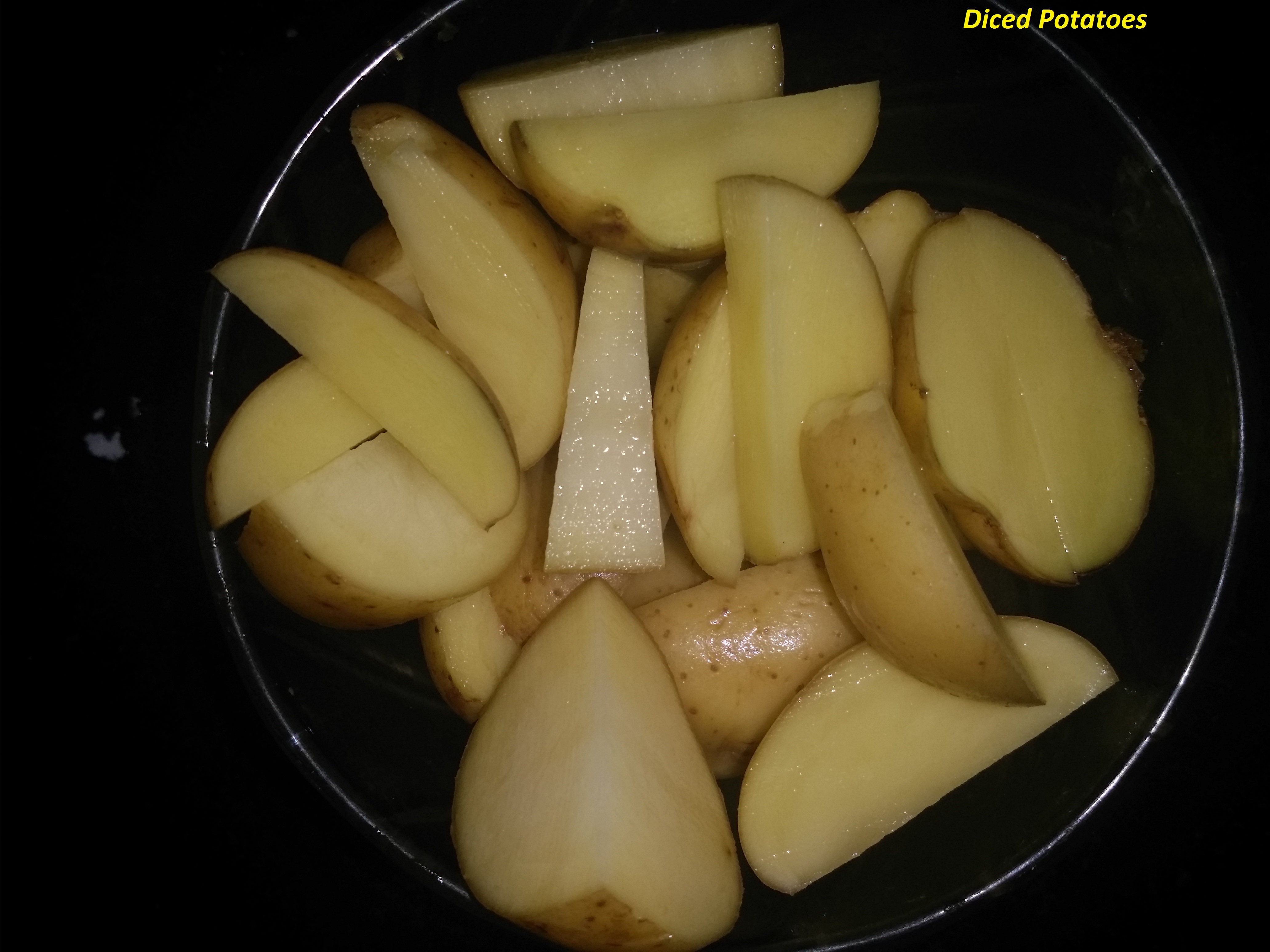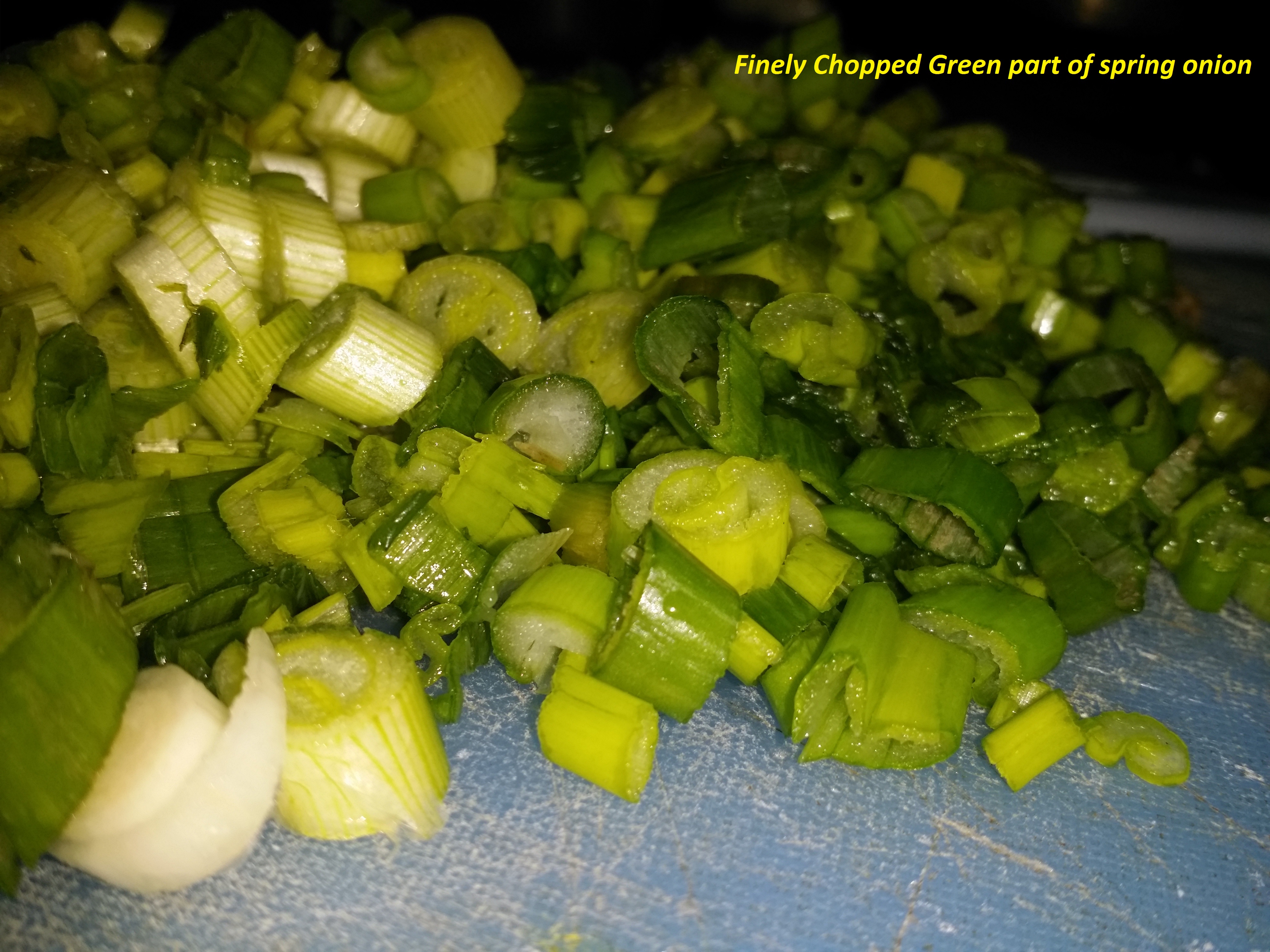 Preparation: wash potatoes and spring onion throughly.slice potatoes in small pieces (refer the pic ). Chop offered the green portion of the spring onion and dice the onion and white soft stem in small circles. Finely chop the green portions