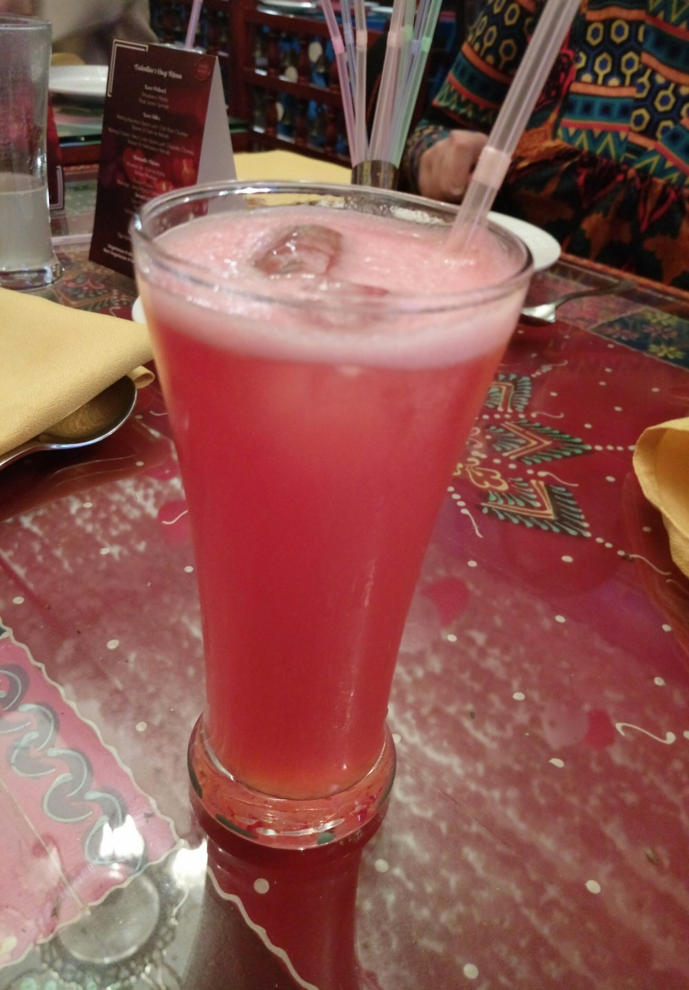 A clear lemonade with the flavor of rose. Tastes completely homemade. The twist of rose water made it taste really nice.but probably your eyes might not like it as much, what matters is the taste.