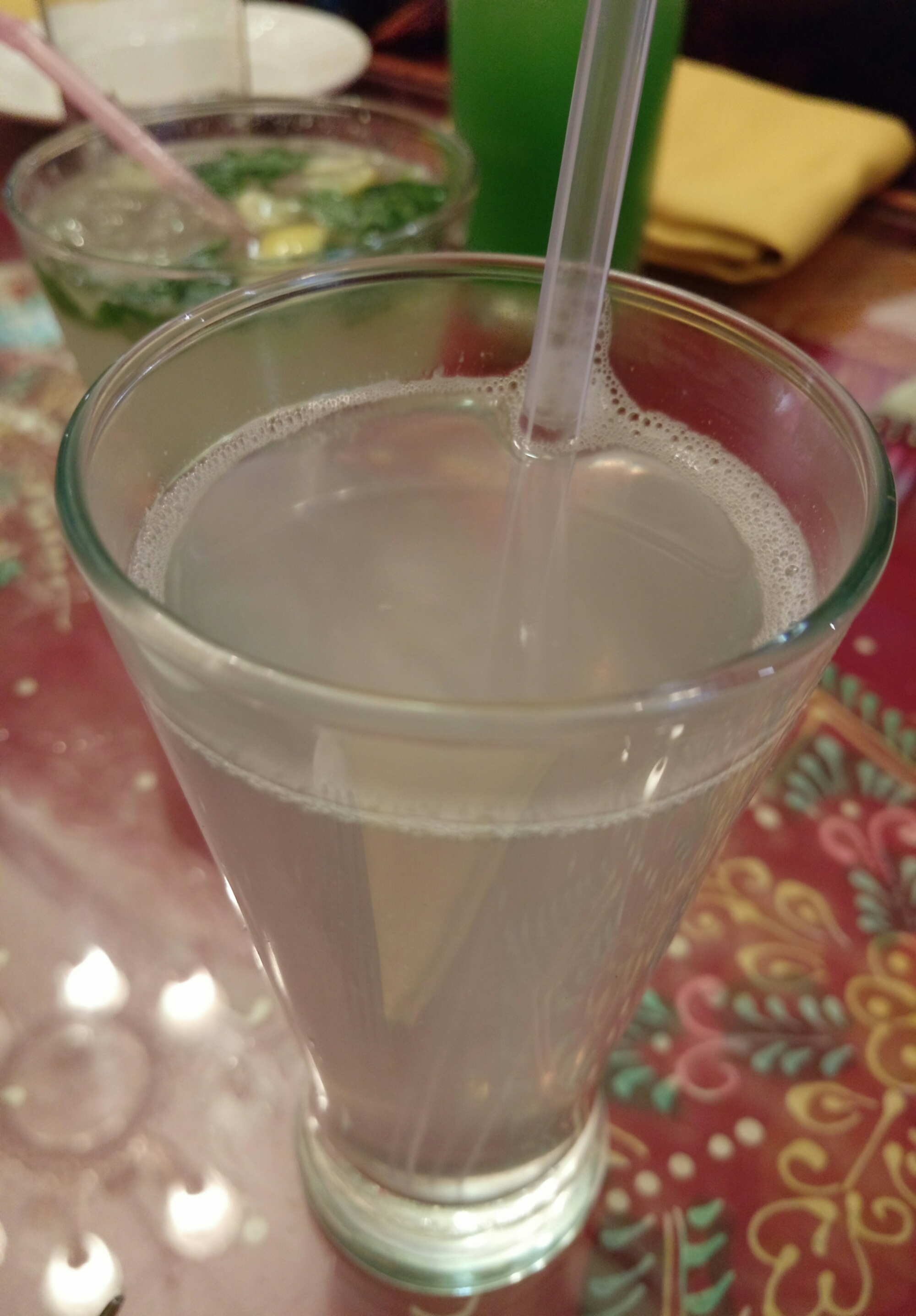A clear lemonade with the flavor of rose. Tastes completely homemade. The twist of rose water made it taste really nice.but probably your eyes might not like it as much, what matters is the taste.