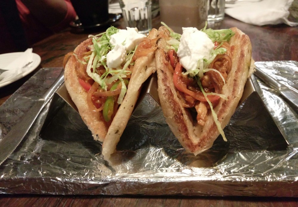 Again a twist with normal Delhi street food Kulcha. These ones come with saute vegetables great on taste and Kulcha done in loads of butter. This is topped with in house sour creme truly fresh and delicious.