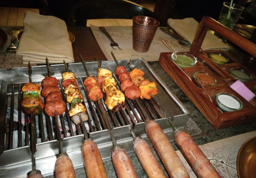 The tables have live grill and as we made ourselves comfortable our grill was put to action with vegetarian options as preferred by us.