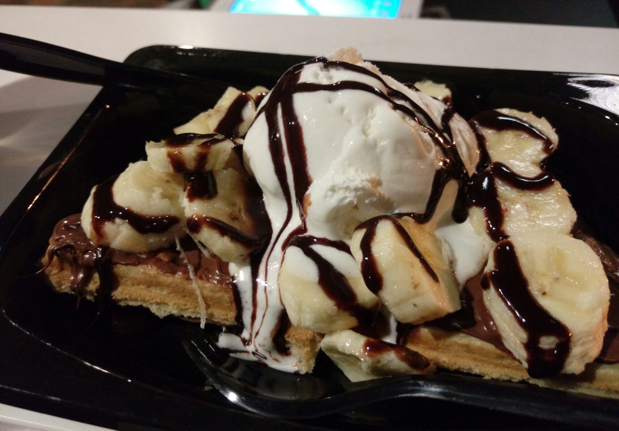 Our favorite waffle with vanilla cream and banana at #Waffles&Crepes