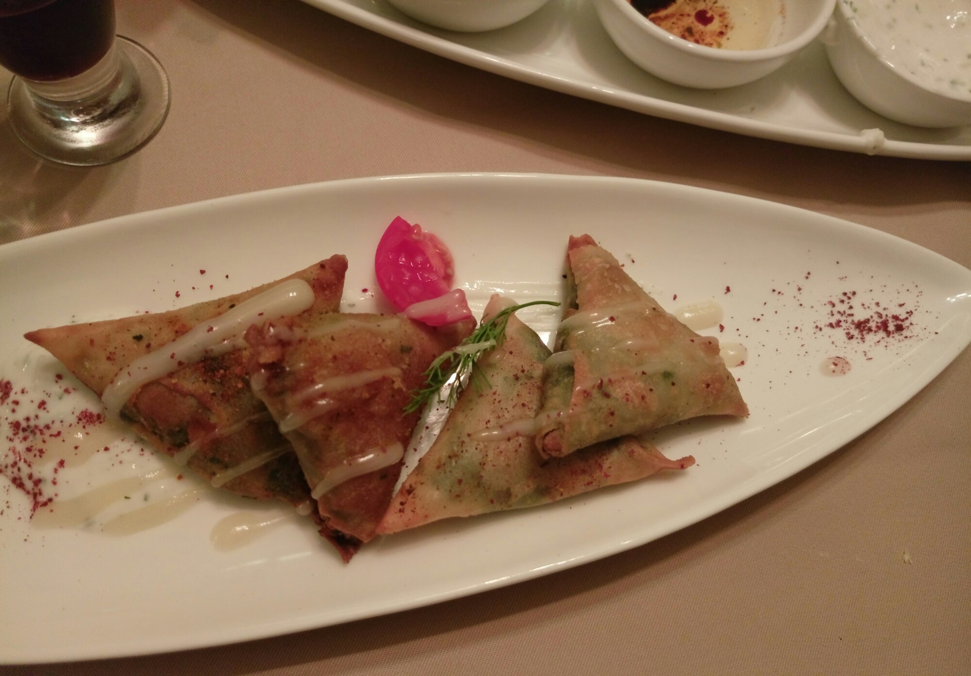 So these triangles are nothing close to our samosas as they have a very thin and extremely crisp outer layer and not at all filling like our samosa so a perfect pick to start with but don’t blame me on deep fried stuff though having a spinach filling ,it is still good for health but not so much. But you are here to eat so indulge. Relish the food and let calorie count take a back seat.