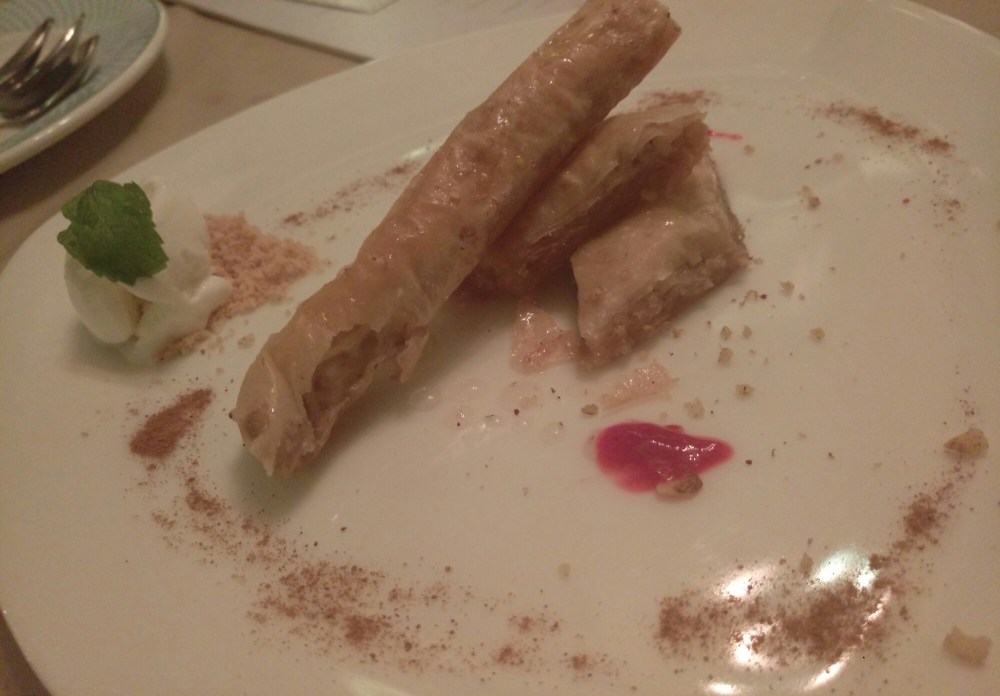 This is a great at site dessert and I think half of the eating is done with eyes. Rich chocolate mousse with raspberry and Turkish coffee and Hazel nuts from the Chefs hometown. And trust me I was sold to this dish the moment it mentioned chocolate and coffee. ( coffee lover u see ). Don’t believe me , have a look for yourself.