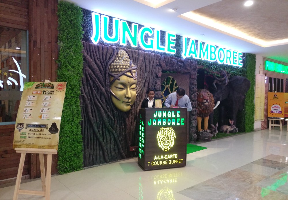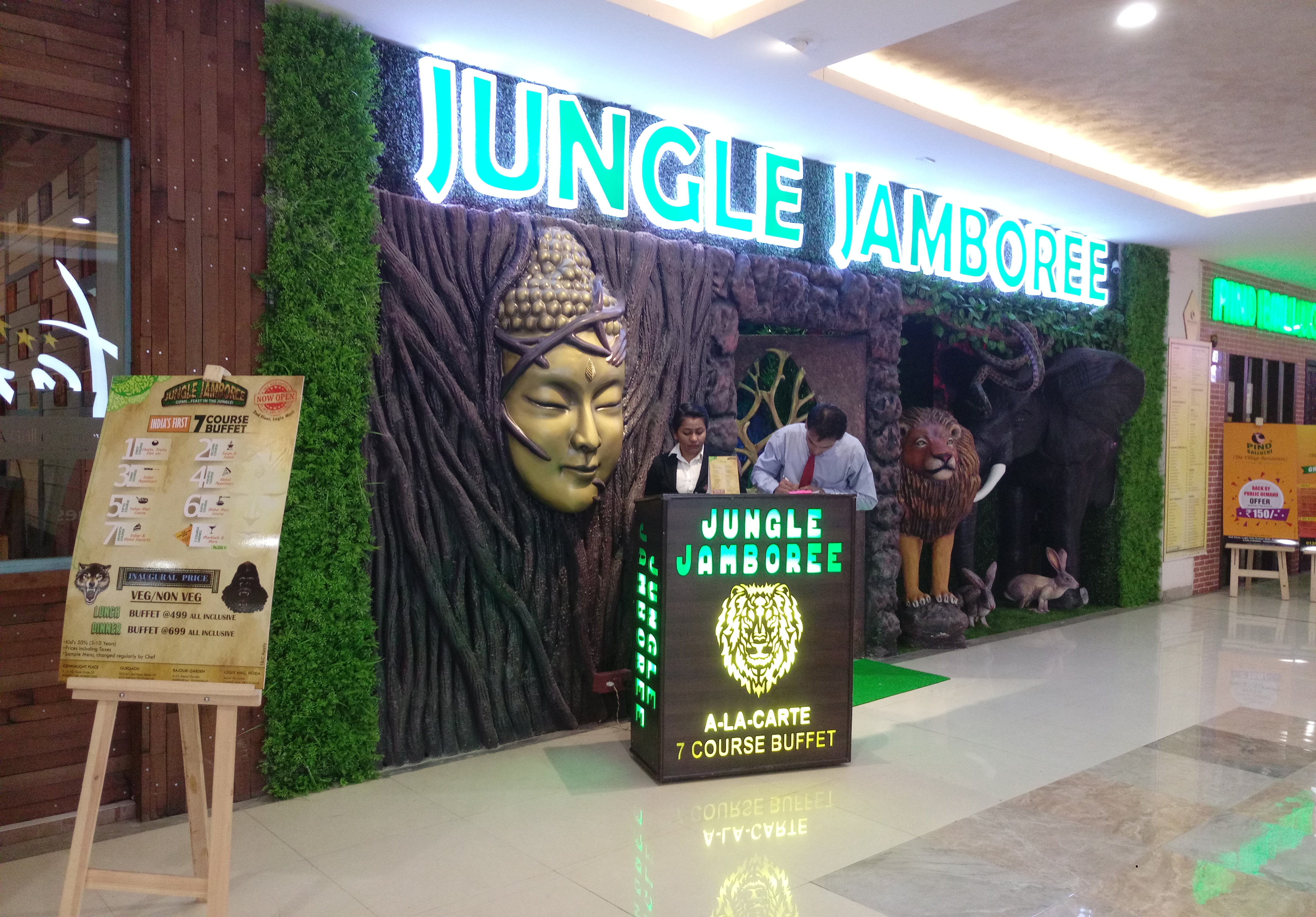 So when Jamboree literally means a large celebration of gathering of people generally a lavish one with a lot of noise and fun. This place was a quiet place with loads of food to create noise in your tummy. This is a jungle themed restaurant in Logix City centre Noida on second floor.