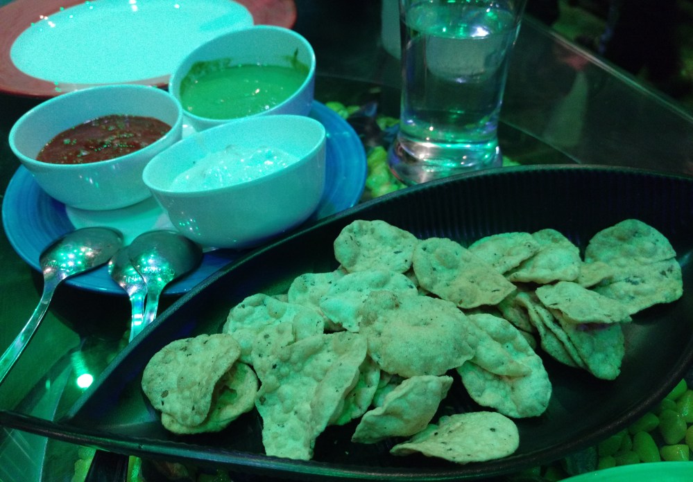 The serving starts from the home made papad and dips along with chutney. These mini chunck of papad keep you busy while the barbeque is getting ready.