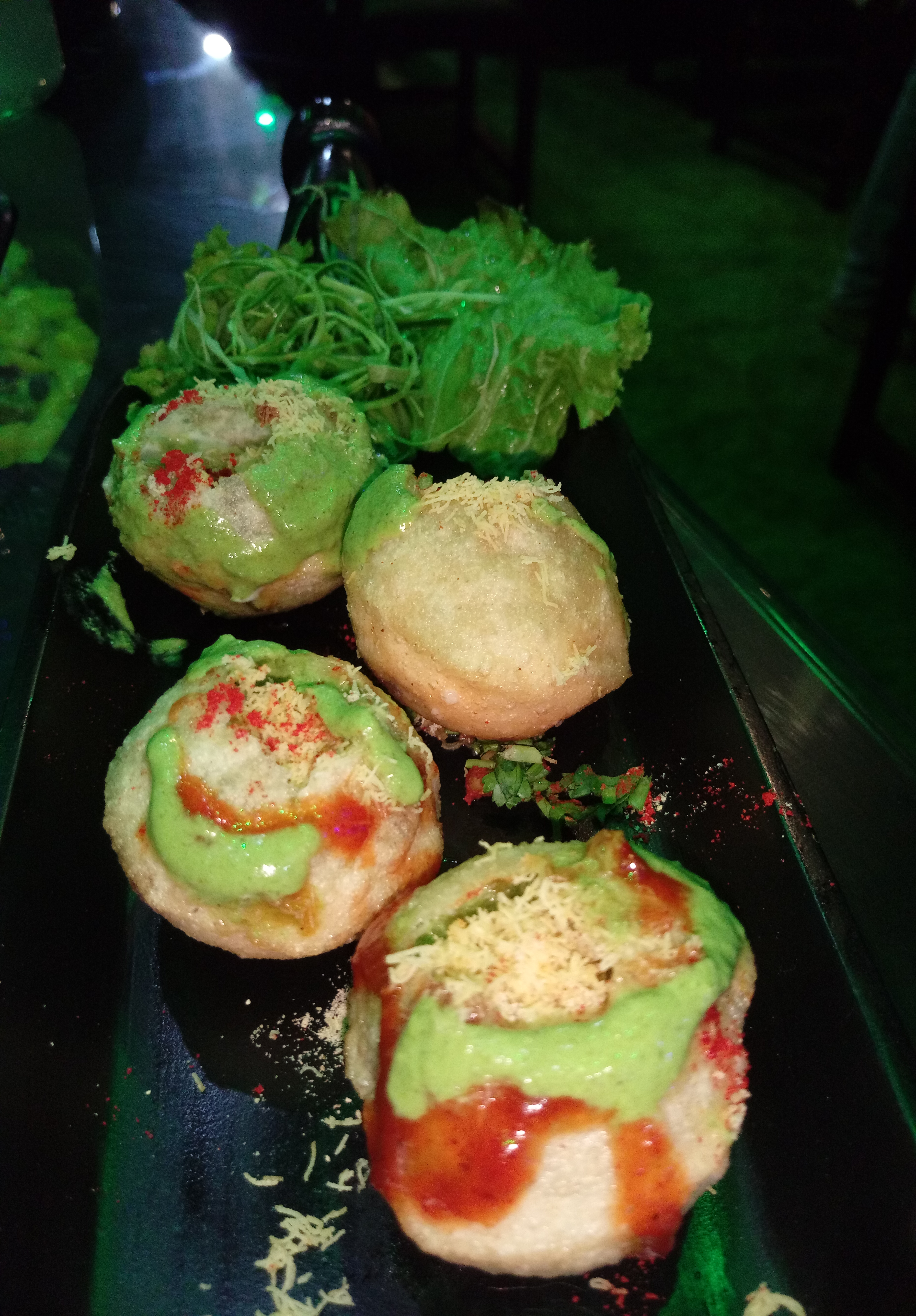 So the first starter that came was my all time favorite golgappa chat filled with loads of chutney and curd. Just the way I love it.
