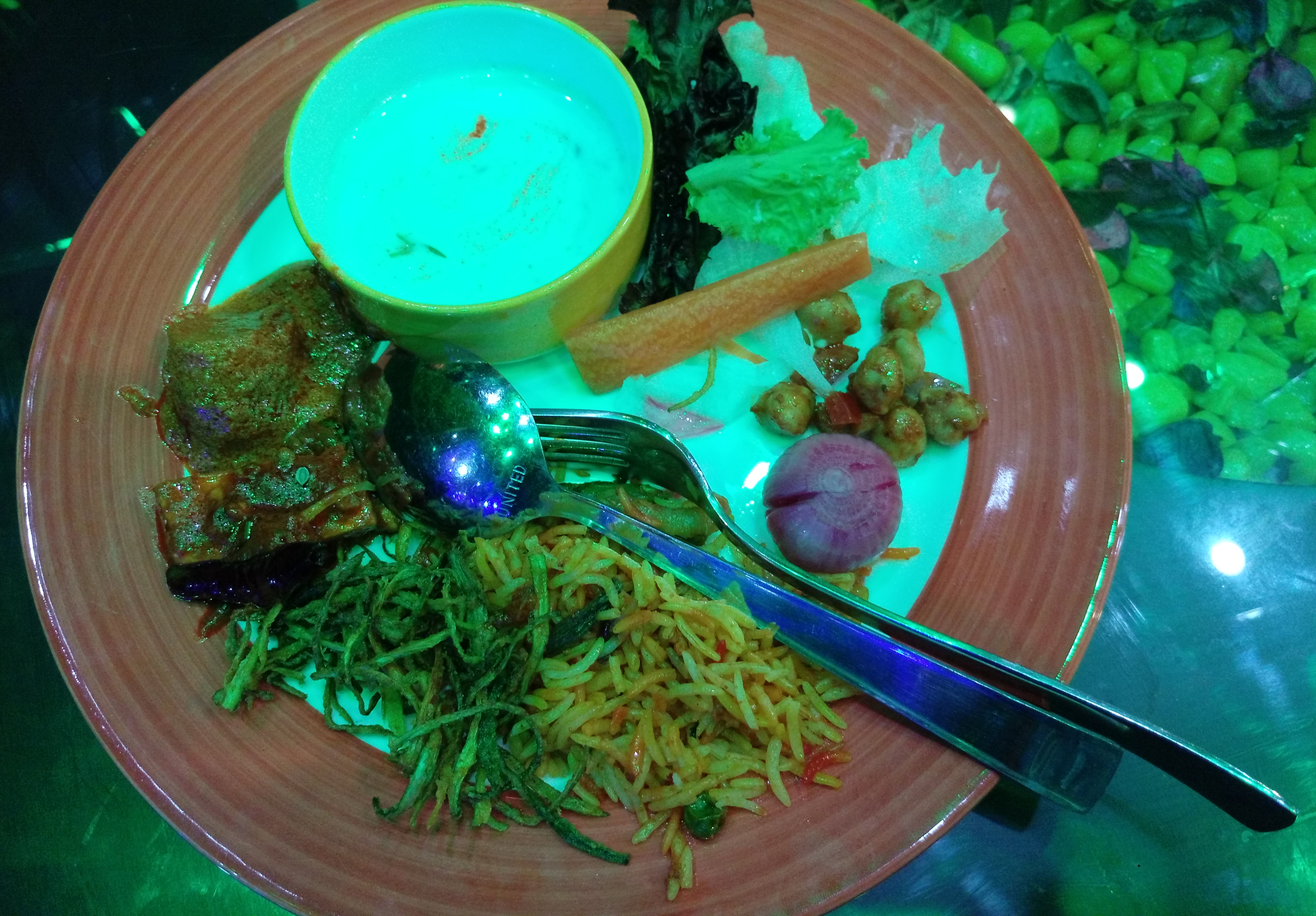 The place is serves Ala-carte, along with Buffet lunch and dinner. Lunch starts at 12:30 and serves till 3pm serving 7 course meal. During lunch the mocktails are included in the package while for dinner you have to pay separately.