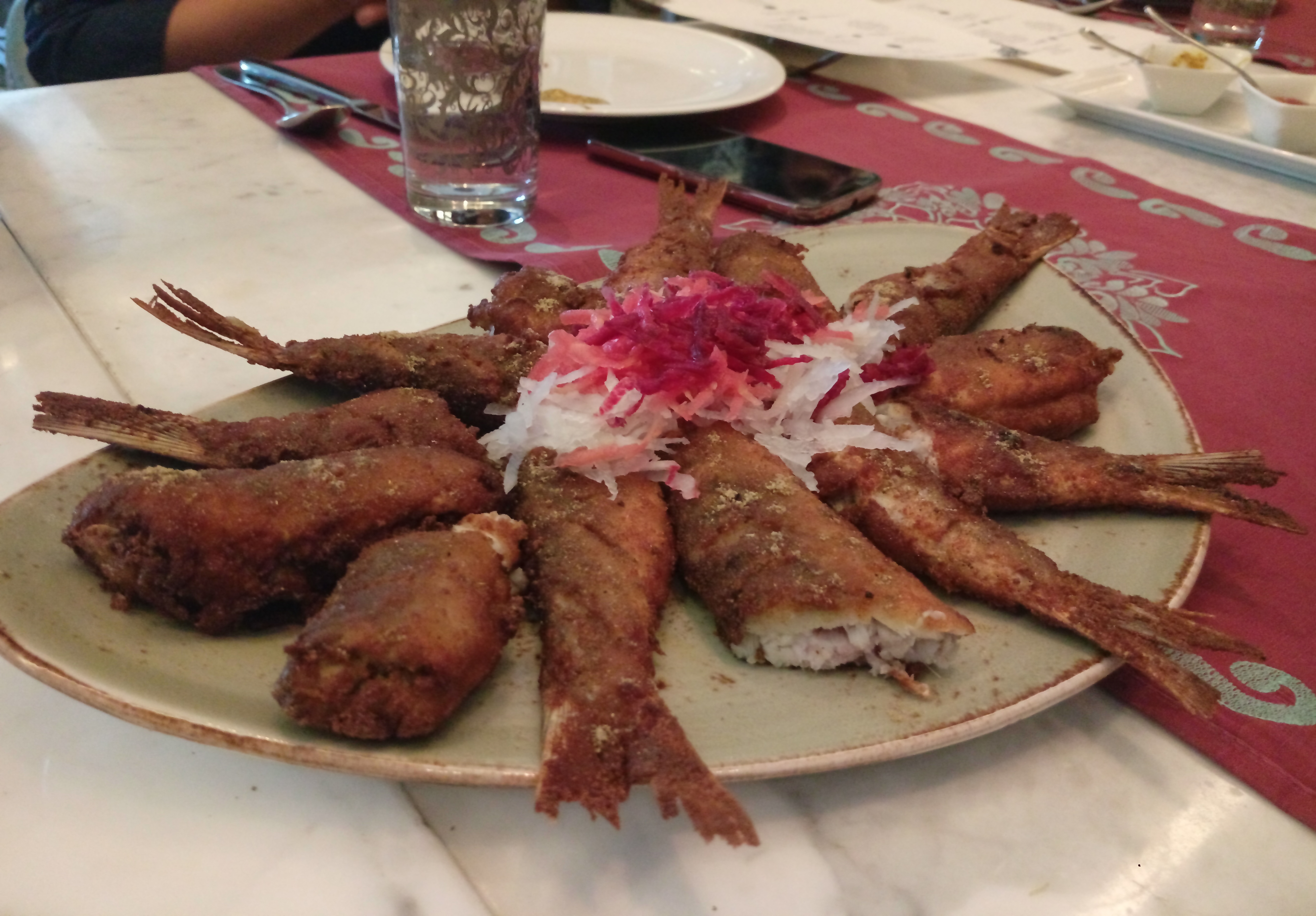 Well Jhal Mori is the Bengali bhehpuri and the distinctive ingredient in Bengali version is the use of raw mustard oil that gives it a hard hitting taste. And this is really yum the taste in tinge hits your senses like anything. Coming to the ghondoraj ghol as the name suggests it’s a drink made of thick whey with Peels of ghondoraj ( large form of a green lemon) and in vegetable starters we had Alloo chop, vegetable chop and mochar cutlets everything deep fried and crispy.