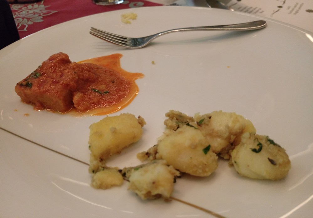 Getting on to the main course since its a buffet so the list of food is endless but then have what makes a sense to you. Like my plate shows 2 dishes that is Dhokar Dalna well this is one of the very special dish and made of Channa dal can be referred as the dhokla of east and the only difference it’s not steamed but fried. And then made into a curry fish refered as Dalna in Bengali. Aaloo Posto is made with khas.