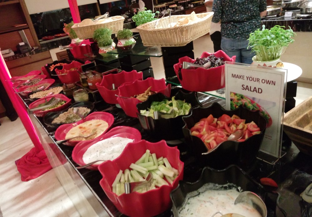 A complete range of salad spread that has almost everything possibly since they have a lot of international clients. So at this live station you can create a salad of your choice.