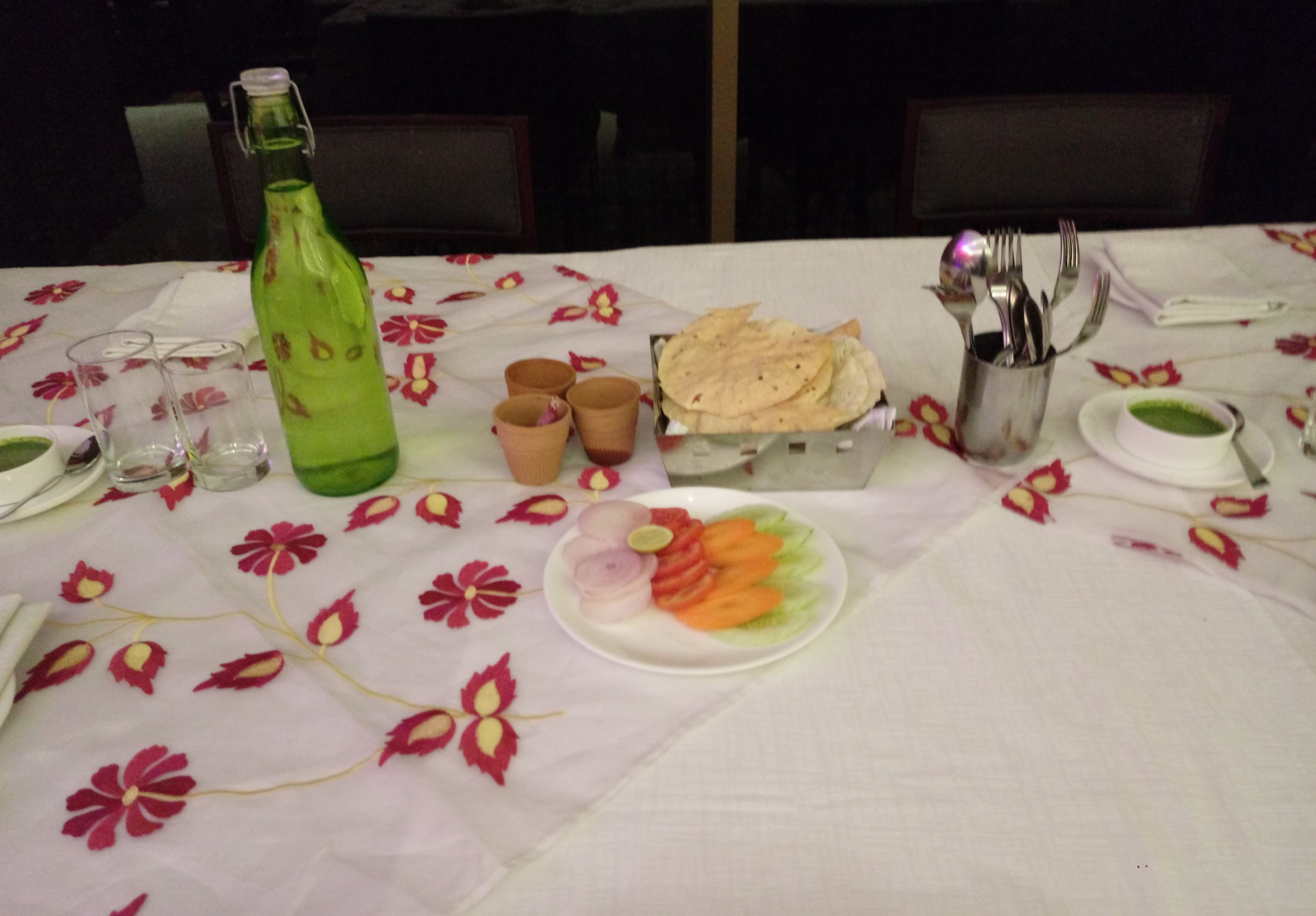 - The table salt and pepper holders are replaced with kullads and has got onion, green chilli’s and salt.