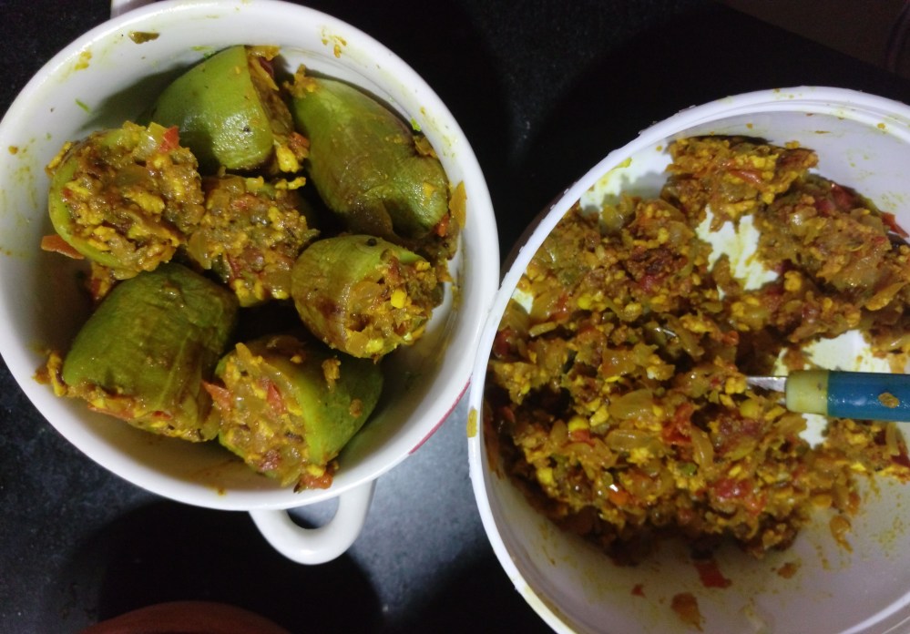 Take 7 peices of large size parwal , grate 1 and half peice and peel the skin off of rest 6, and remove the seeds from inside to stuff them.