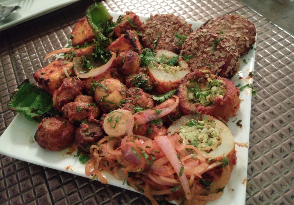 Followed by the vegetarian platter to compliment our drinks. The platter came with 3 peices of Dahi Kabab,Tandoori Aaloo, Paneer Tikka and Mushroom. All grilled served with chutney and salad.
