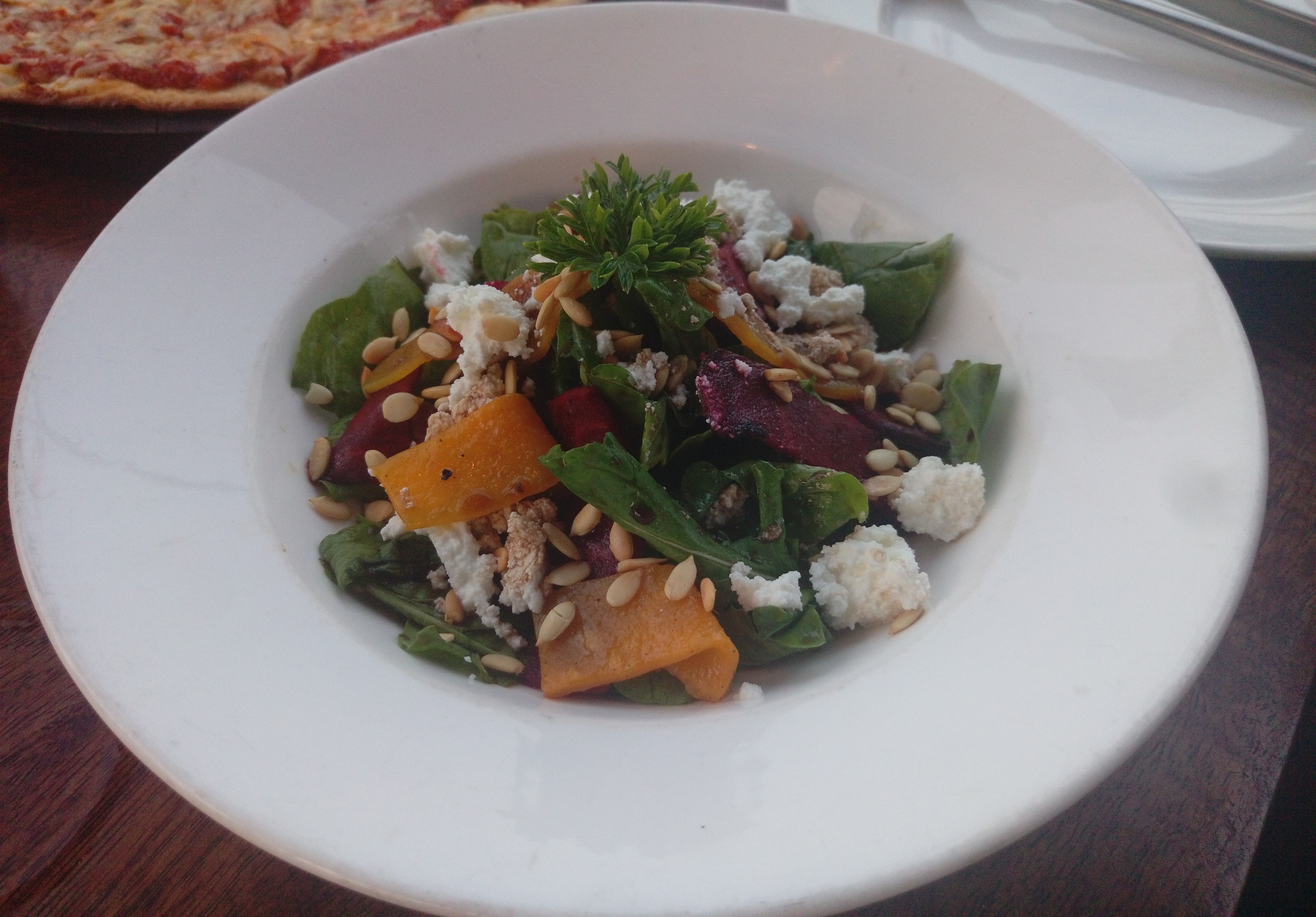 Being a salad lover, I just love trying salads at different places. And this one had served one of the best salads that I had after months. Roasted beetroot ,pumpkin ,rocket leaved and feta cheese. And the pumpkin seeds added the much needed crunch along with the after taste of the seasoning.