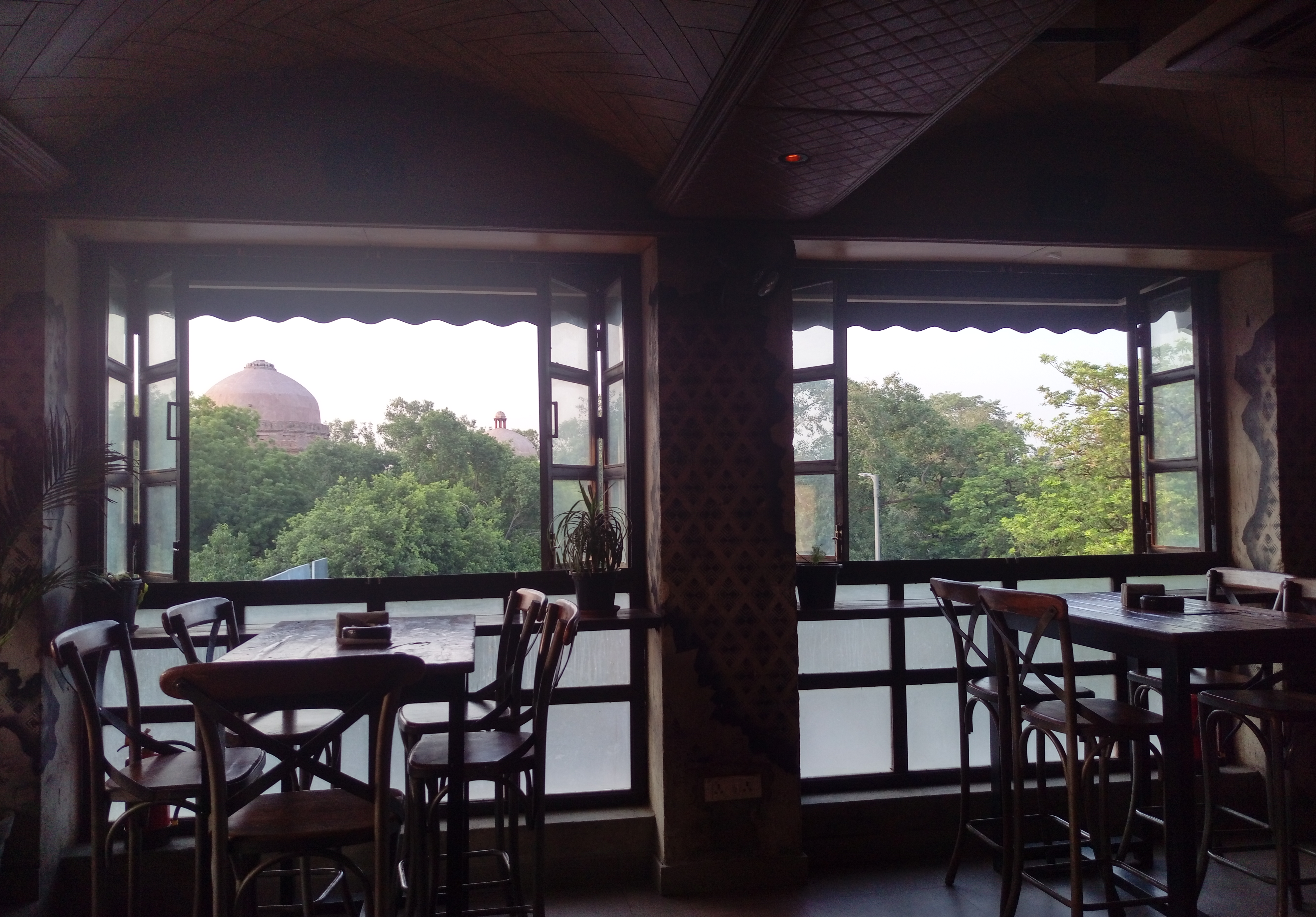 If you like the open air terrace sitting, a view of green trees around and a tomb peeping from the green , an array of mist fans spreading a cool breeze even in a hot evening making it a perfect place for a romantic dine out with your loved one.