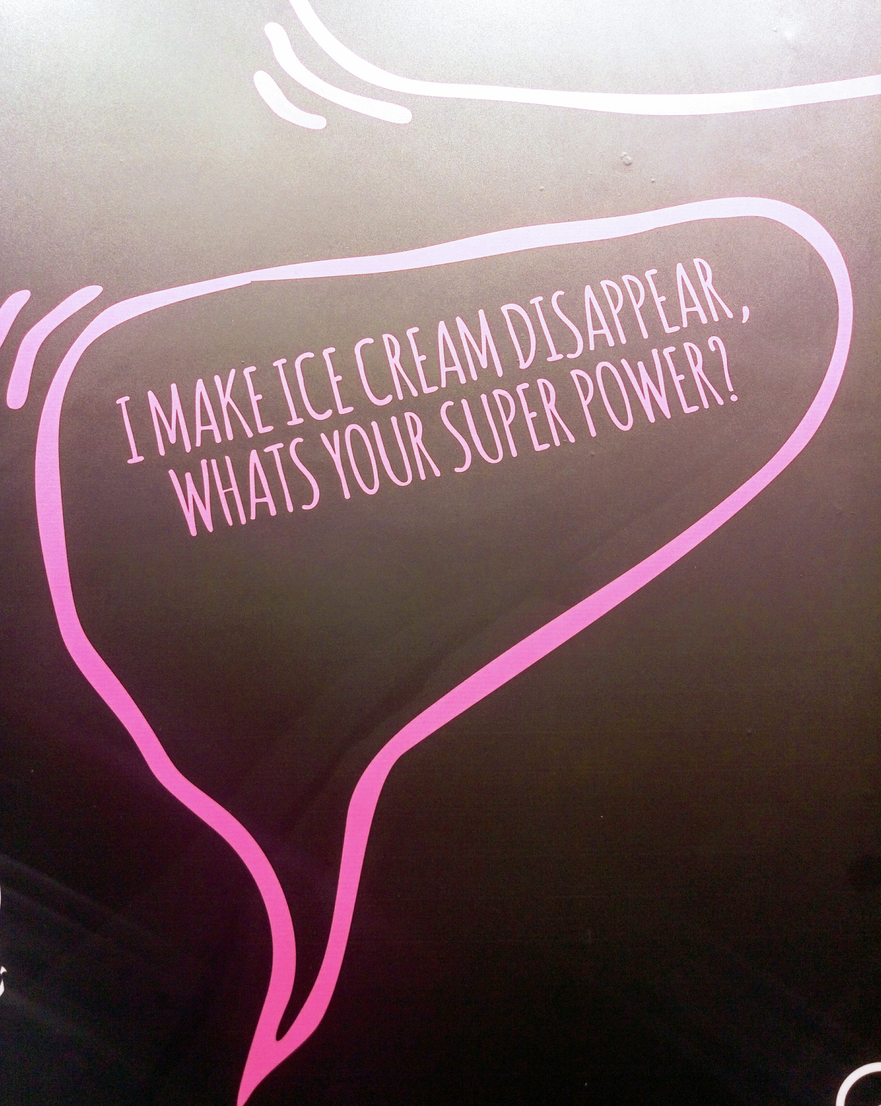 This place had so much quirky messaging all around the wall and a huge book that is work in progress and will offer, menu some ice cream facts and also people ll be able to give feedback on it.