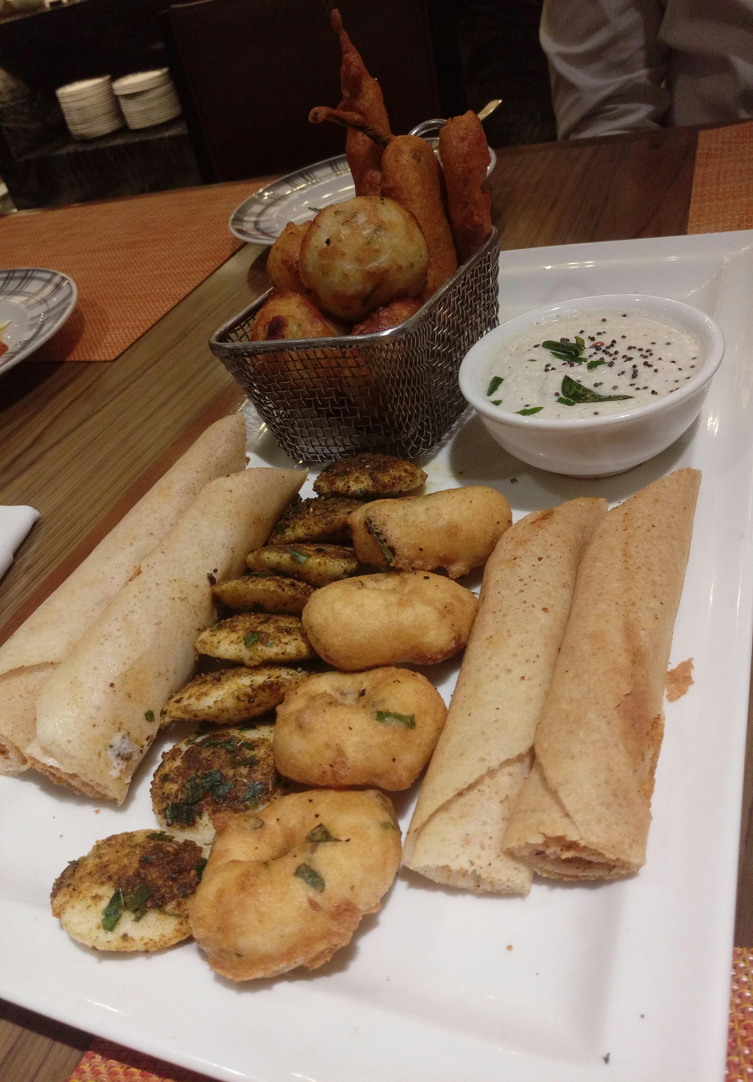 This was apparently one dish that covers most of it not all south Indian delicacies and is a value for money pick from the menu, priced at Rs. 625/- that’s what a normal main course dish will cost you at this place. This is a complete meal. If you want you can request for a Bowl of sambhar to make it more wholesome. so what all it has? well, it has got Podi Dosa cigars – Dosa rolled in form of a cigar and cut into pieces, migalai bhaji, manga panizahram, Karuvepalai mini idlis, kodai migalai medu vada all this served with coconut chutney. Simply awesome. Just loved the dosa cigars and idlis just the right kind of spices for my palate.