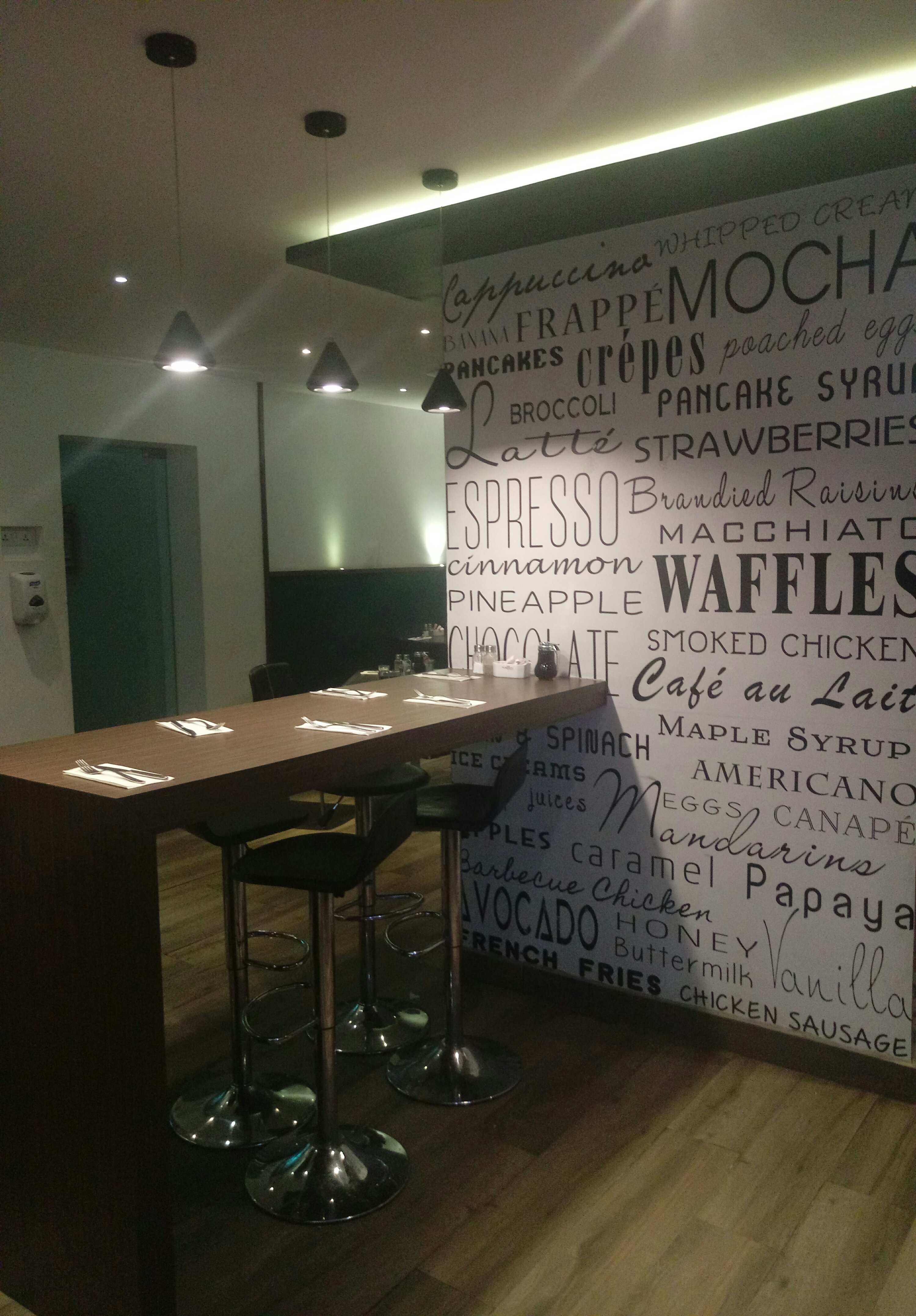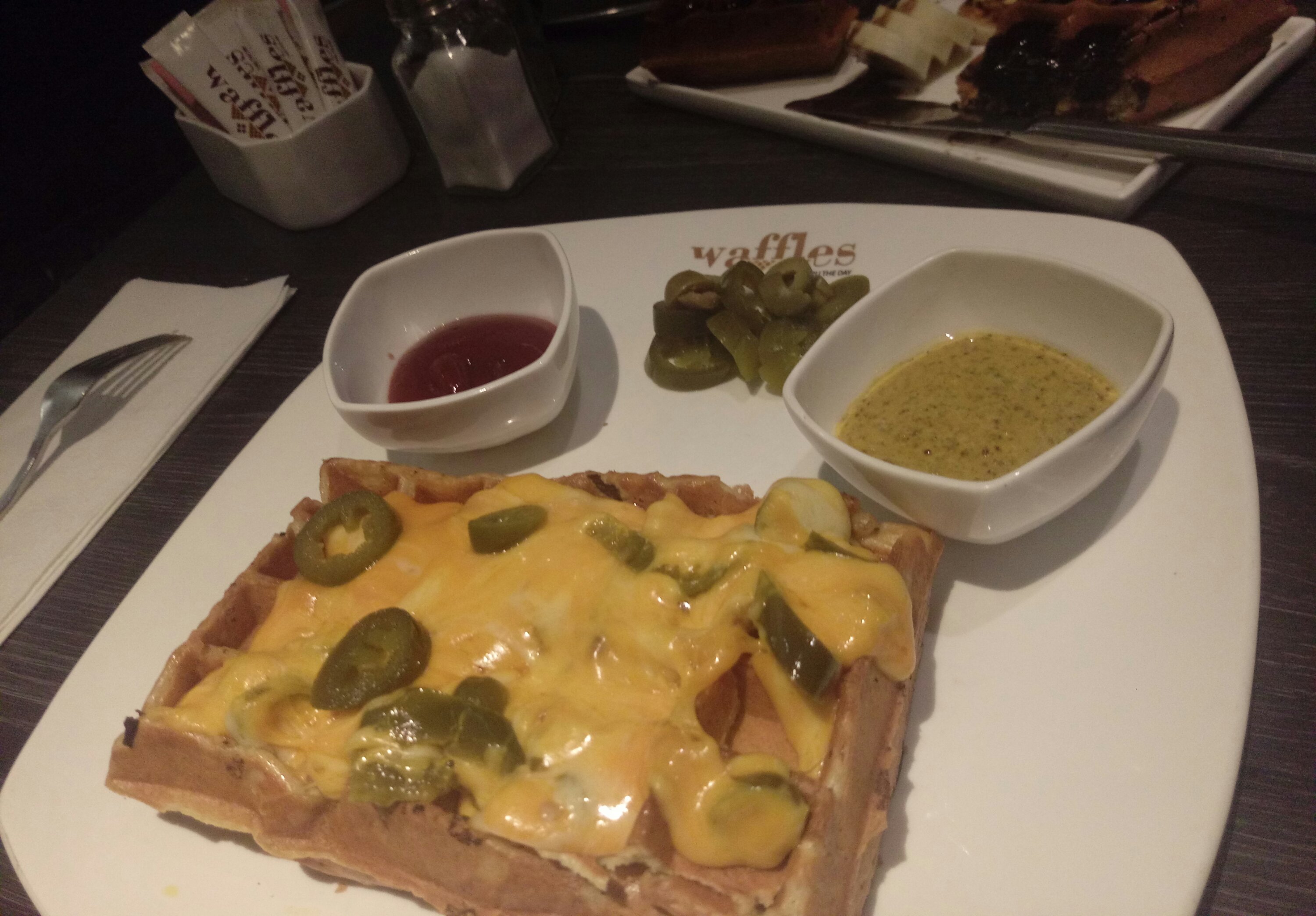 As we took the stairs down before our eyes could spot a waffle at waffles thru the Day, the strong aroma from the kitchen hitting our olfactory declared we have to have it right now right here.