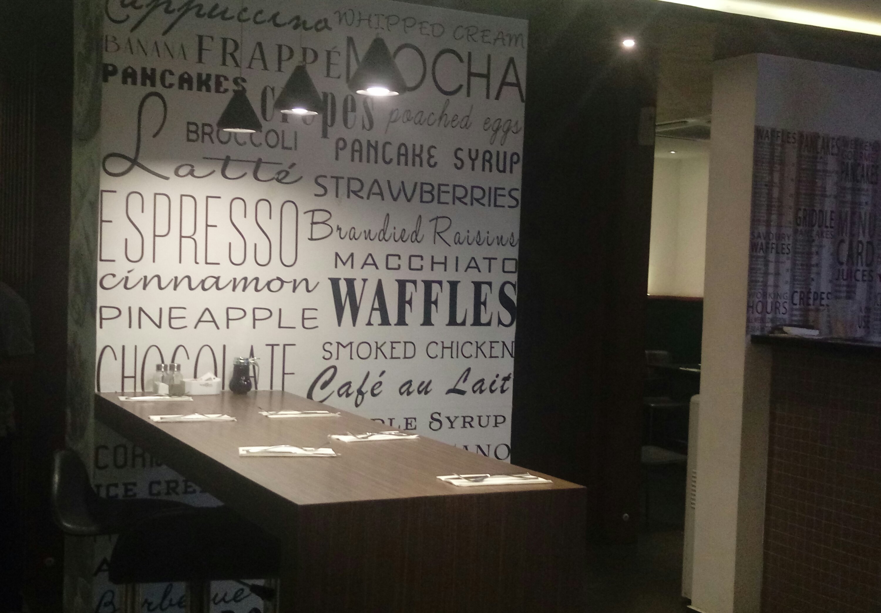 We were just wandering the streets in Adyar Nagar while I saw this board saying Waffles thru the Day, and I felt as if someone has just read my mind. I went down the lane took a left and camouflaged among the residential this board marked the location in the basement. Not easy to locate but still we could make out the basement entry.