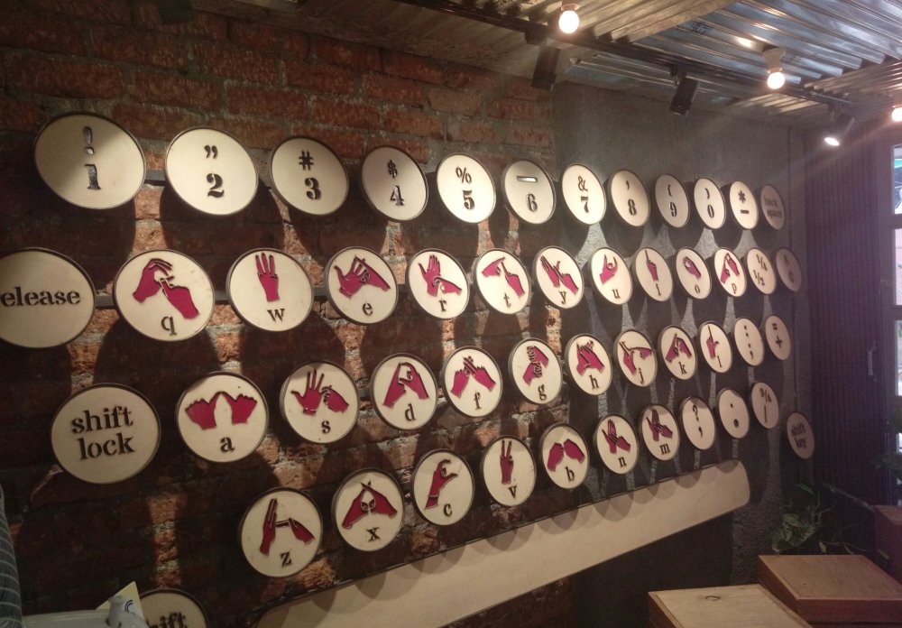 Since I have been to a Deaf operated restaurant so I definitely knew that I ll get to see a wall that would decode all alphabets in sign language.
