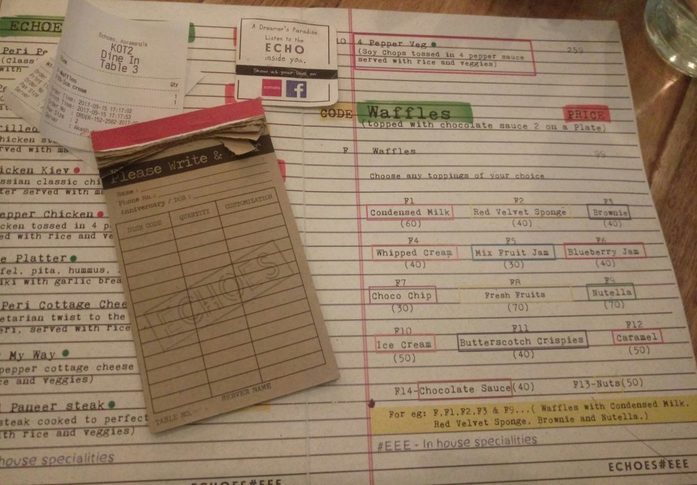 Having been to one of the silent restaurant in Delhi, Echoes had been on my must-visit list at Delhi and I didn’t know that I will get to visit Echoes in Bangalore while I so wanted to go to the Delhi one.