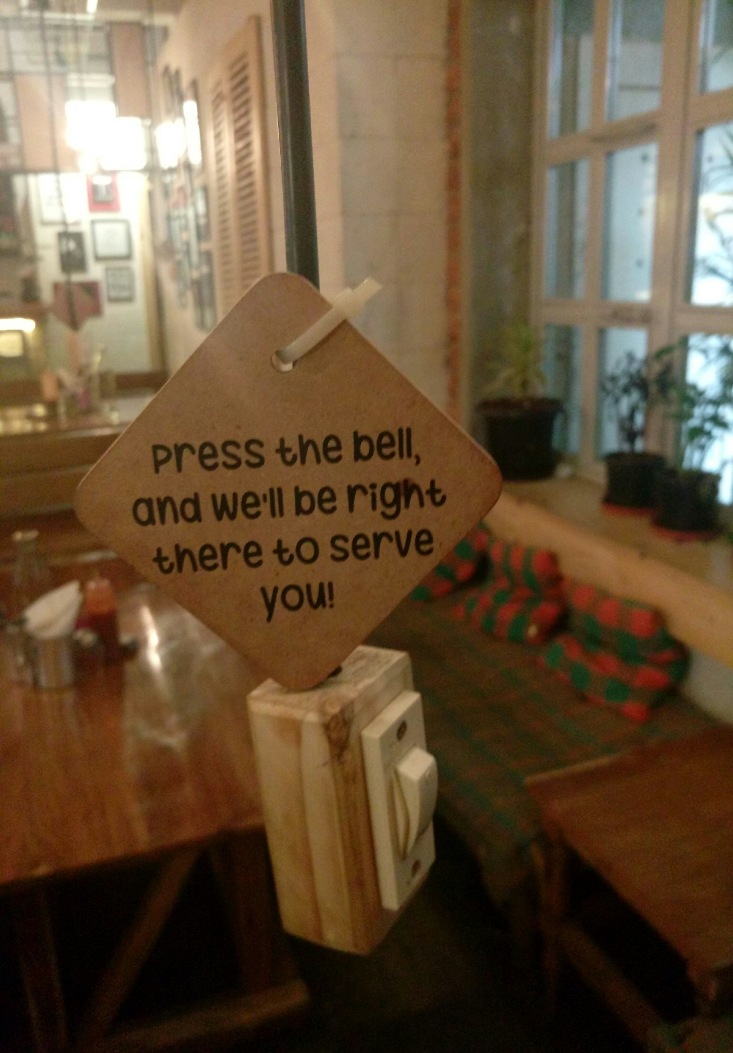 As we were seated we saw the switchboard on each table, asking us to press the button for someone to attend us. this was super cool. for anything and everything that we needed here we simply pressed the bell that was connected to a light on the counter and a smiling face was at our service immediately after acknowledging the bell.