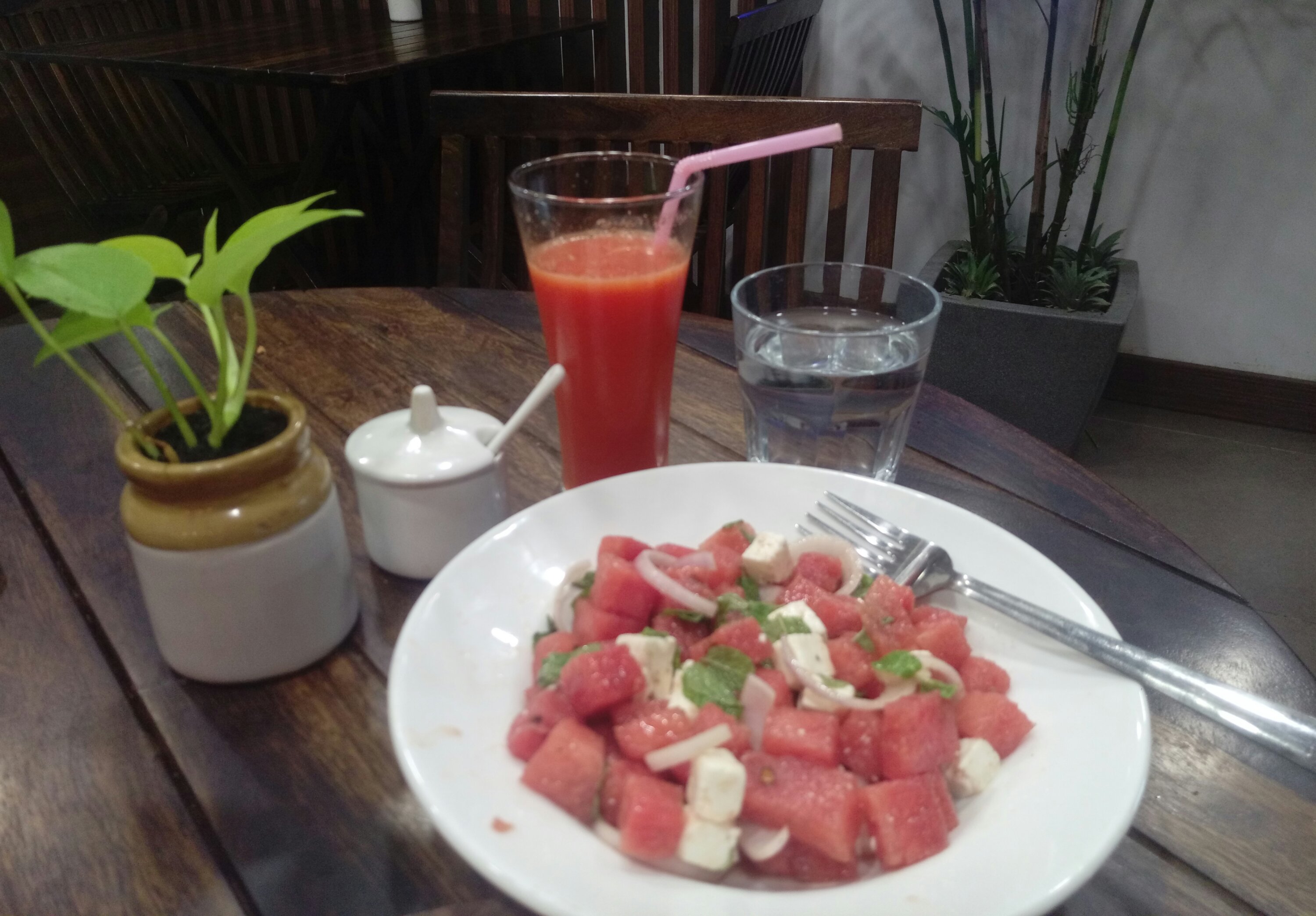 Watermelon feta is one of my all time favorite pick for salads, so ordered one here too. Though the feta didn’t tasted as good but I think it was the organic taste. At times when you have not had organic stuff the taste seems different then usual. But could not understand the onion rings on this fruit salad.