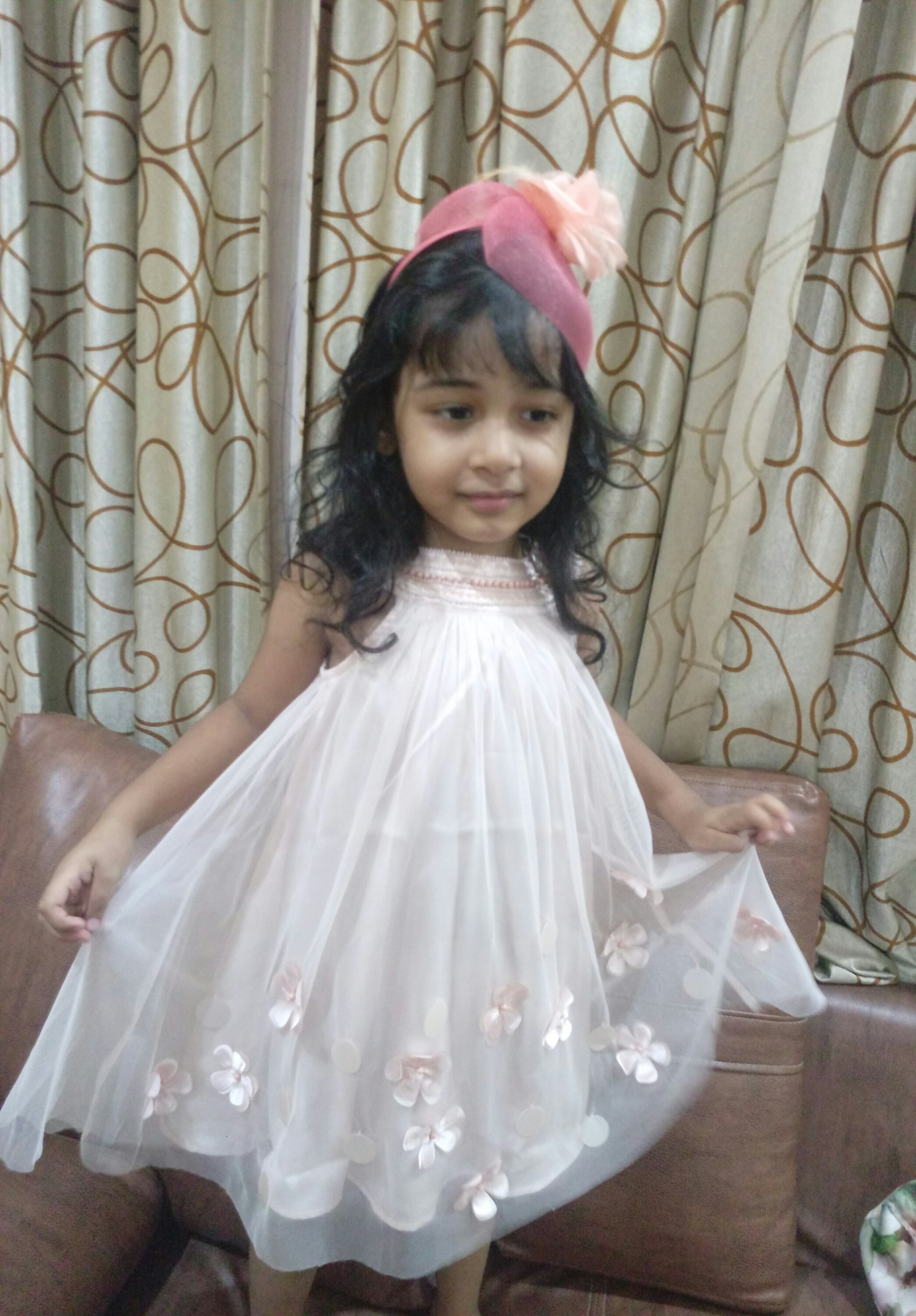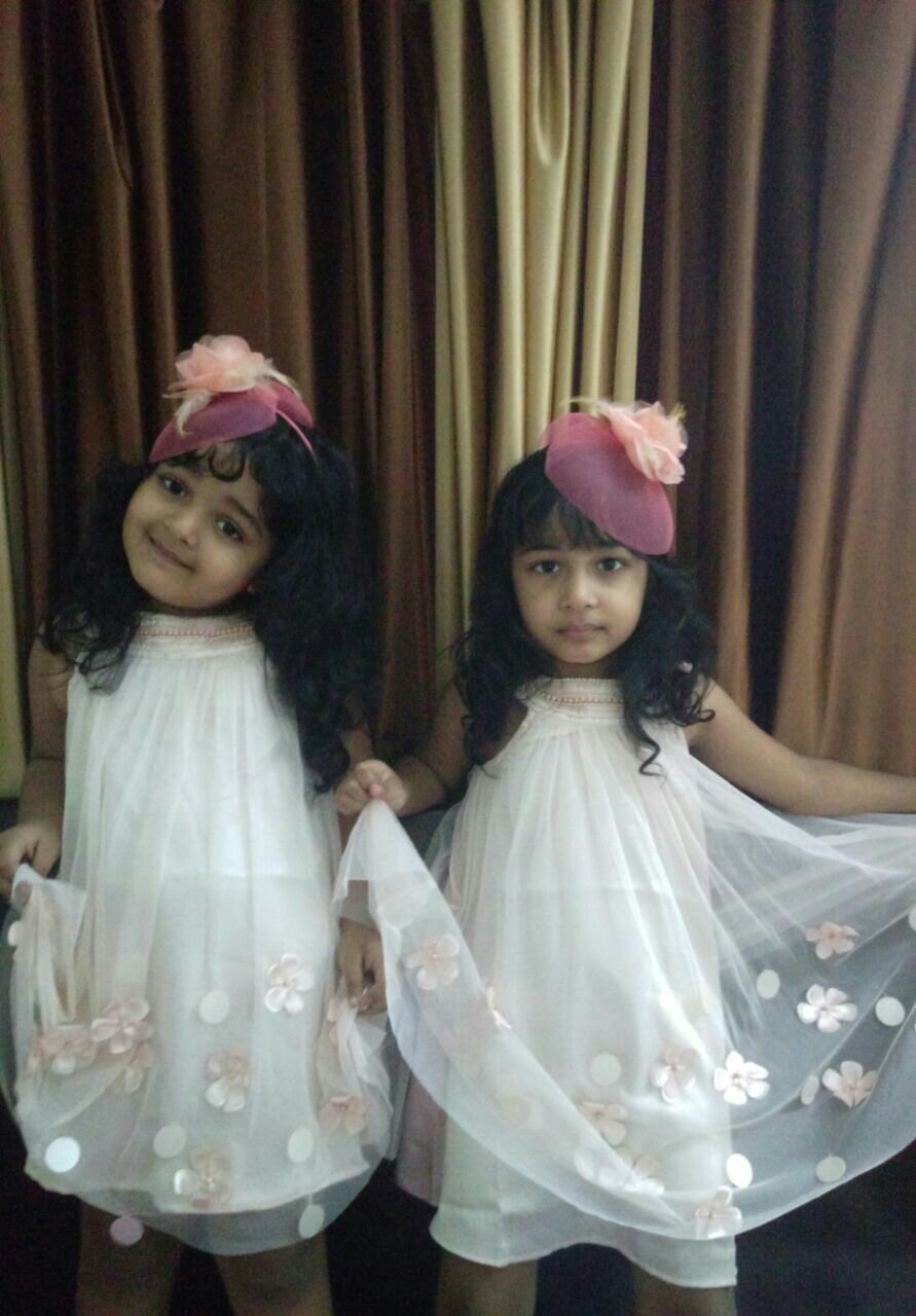 After making them wear these lovely celebration collection from their new range i realized , few dresses look so good in reality with a perfect fit that you really feel happy about it. Though they are twins still both have a bit different sizes. Have got both the same size dresses, normally I keep a difference of a size, surprisingl the same size due to the inner lining really had a good fall on both of them and its quite apparent by the pictures have a look for yourself The reason for such a perfect fit was the satin lining the dress had inside ,that made the dress look good on both the girls. .