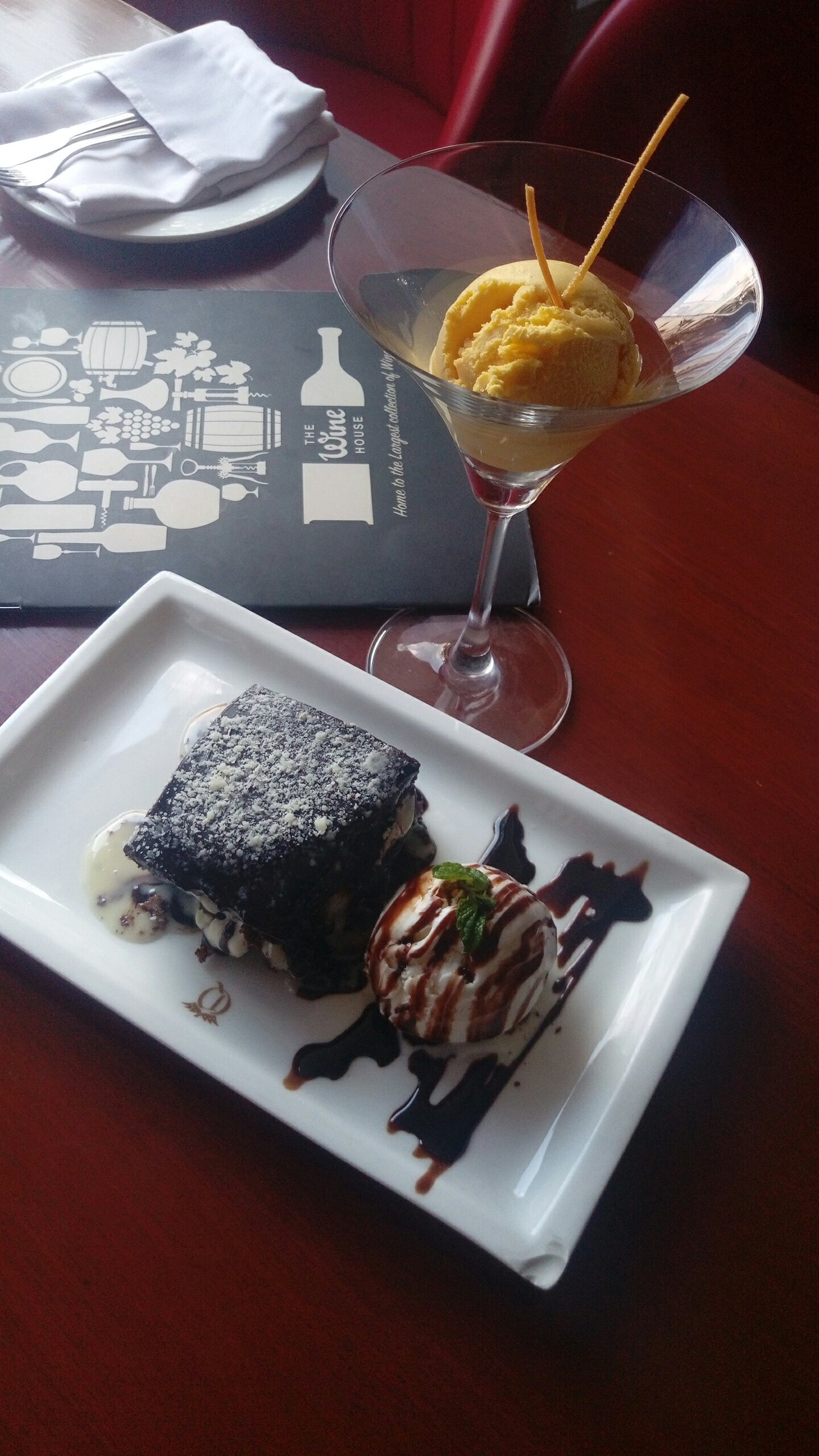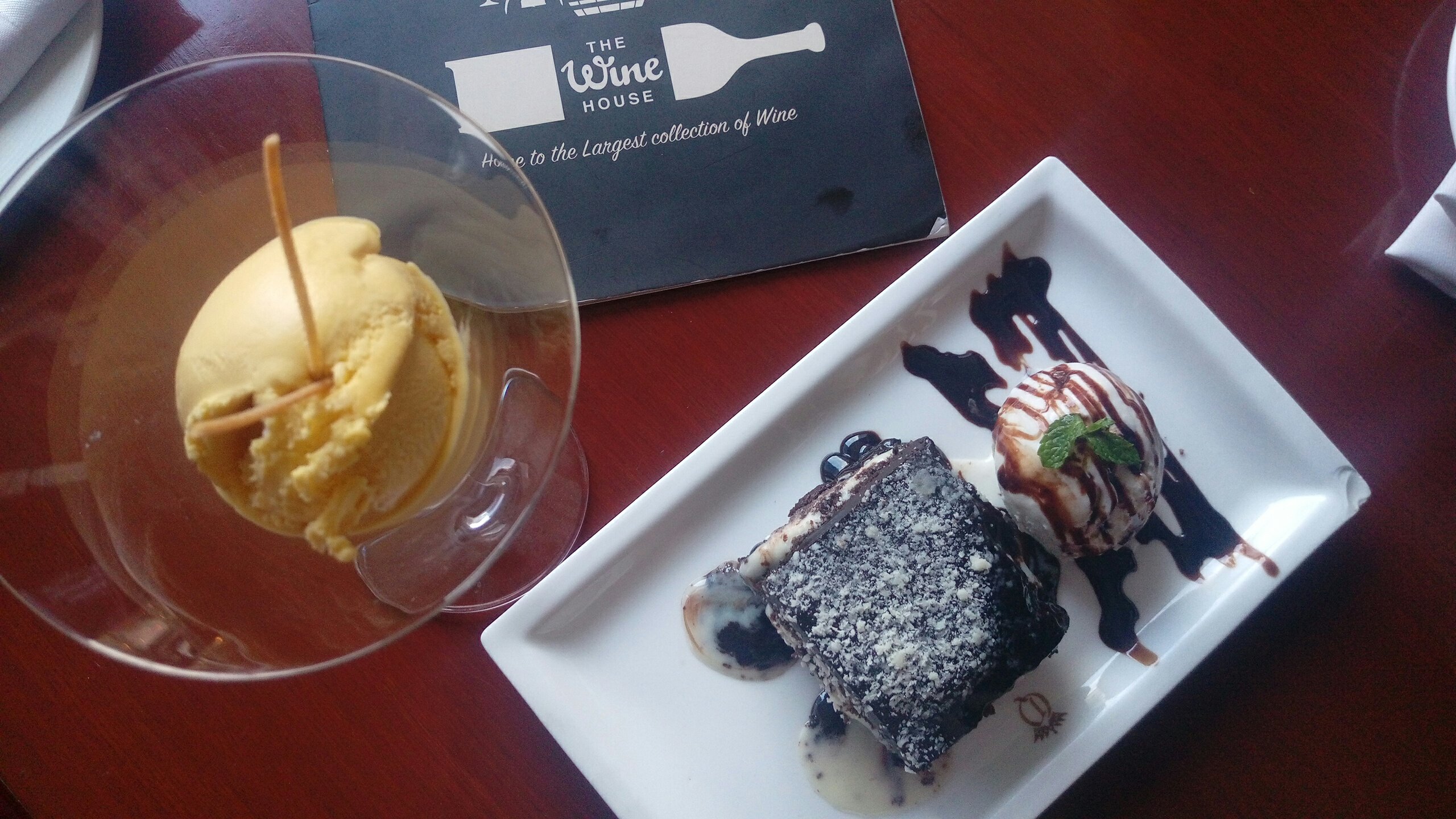 And for cake lovers our next item was – Death by Chocolate just for its looks, texture and the blend of tastes. Frankly, the recommendation was by the Wine Bar team for it’s Chocolate Lasagna Slice – with two types of truffle layers with sponge. It was served with a scoop of vanilla ice cream for our delight.
