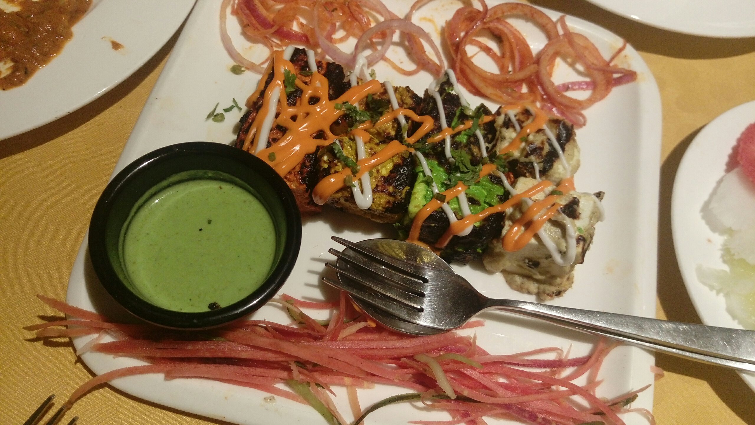 Paneer tikka platter for Rs.279/- : A vegetarian and Paneer tikka is like made for each other. We ended our starters with this while moving on to main course served along side. This comes in 8 peices of 4 different kind of Paneer marination – Achari, Ajwain, Hariyali & Malai, probably you can make that out from the picture.