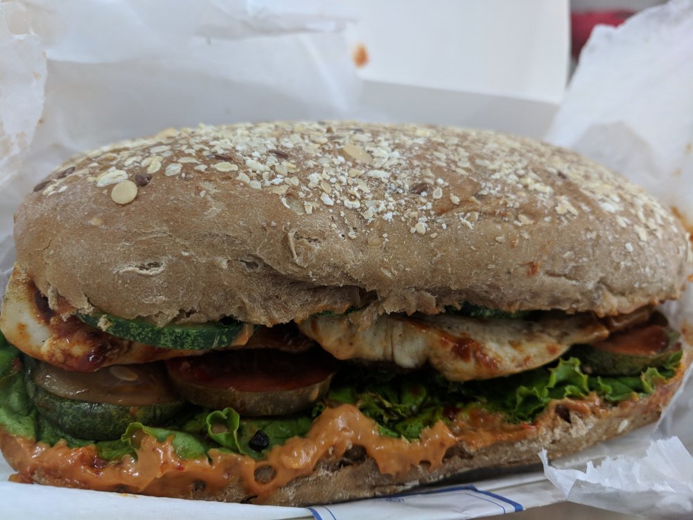 Cottage cheese banh Mi Sandwich : This is one stopover at Zomato in Gurgaon whoes sandwiches are rightly priced under 200/-. This one I had was for 180/- and super loaded with 2 big streaks of grilled paneer,loaded with lots of veggies And size was almost the size of a sub from Subway but quality wise much superior for sure. Fresh multi grain bread with perfect layering of Veggies, letuce, sauce and Paneer across the sandwich made every bite taste the same across the length – truly delicious. Don’t miss to spot the size of ye paneer streak.