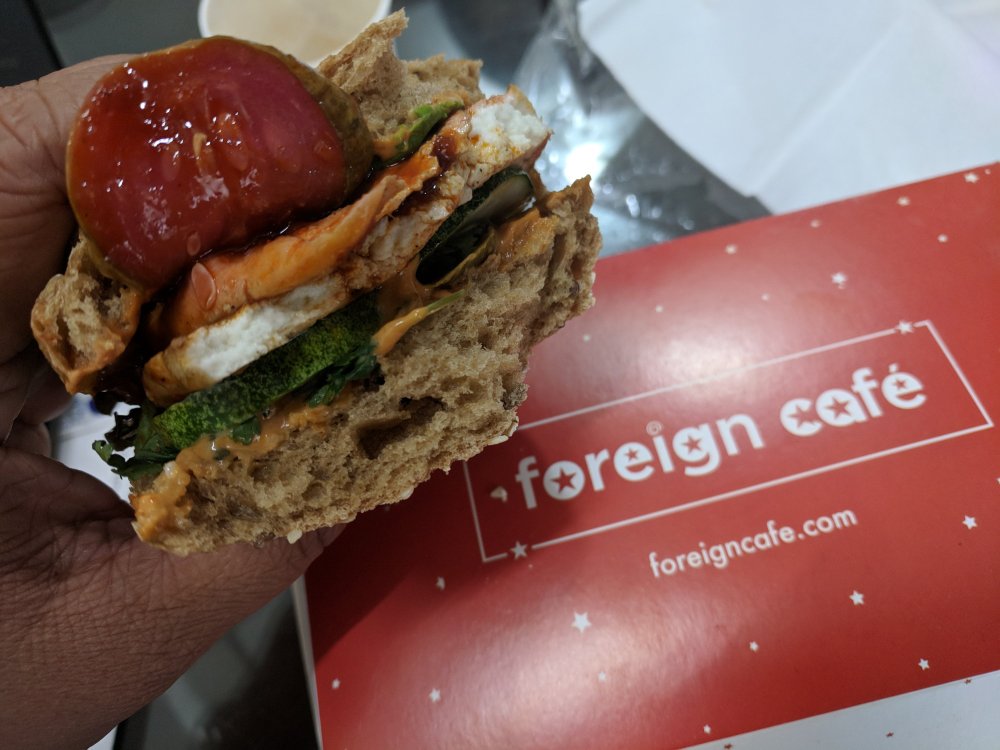 So while I went through the menu and being a vegetarian myself could not ressist their Cottage cheese Sandwich along with veg burger , cold coffee and the American Apple pie. Let me take you through the food that I had from Foreign Cafe, but before that let me highlight their packaging. Everything came very well packed in their own boxes and the apple pie bag was so cute that I felt like a small kid having a Pie bag.