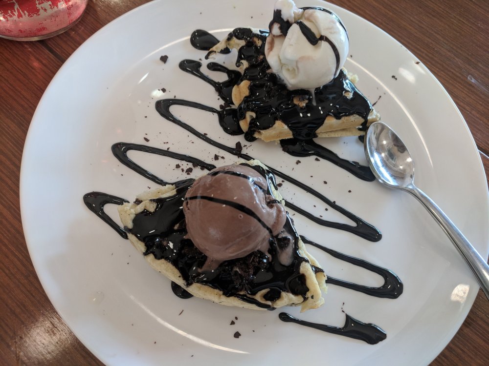 We went for Belgium Day & Night – White and dark chocolate waffle served with a scoop of Chocolate and Vanilla ice cream. For a change liked this combination.