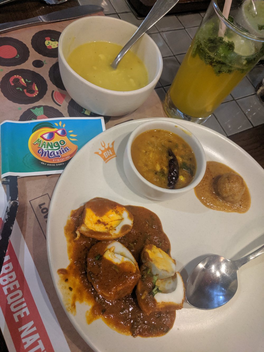 The girls had the Mango Lassi before I could click it. So in the image you can see the Mango Colada and the Mojito. Both tasted yum and refreshing.