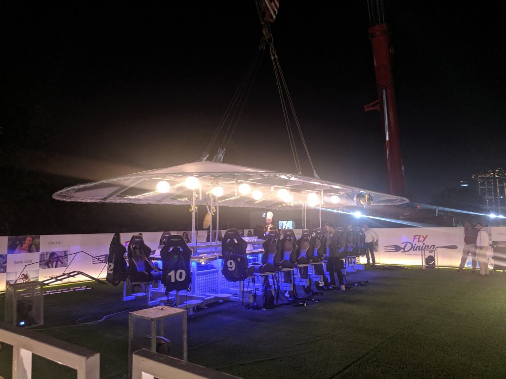 As the name goes it’s a perfect combination of dine over some adventure. You are lifted 160ft ( Approx. 50 mtrs ) above the ground level with your dining table and seat intact in the structure. For people who have a height phobia need not worry as all you need to do is just focus on your plate and the height won’t bother you unless you look down.The team on board is very well trained to take care of you while they keep you busy with the meals that are served in the air. Music and Light plays around with your mood while you are high.