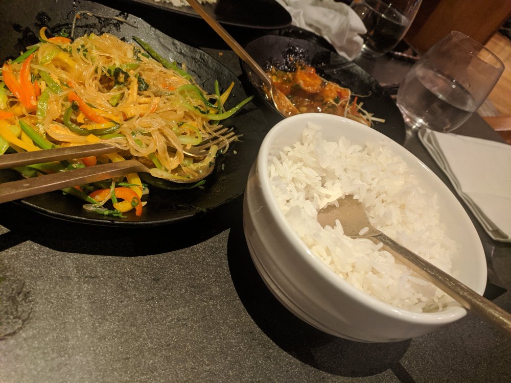 Main course : with every main course dish you have a choice of glass noodles or streamed rice and we went for both.