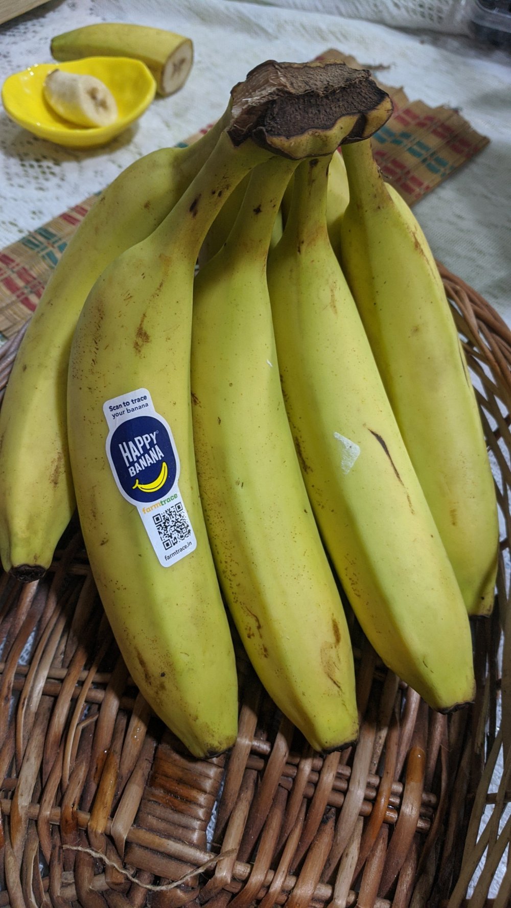 This morning I had one such experience with happy banana. So I regularly shop my vegetables and fruits from mother dairy and normally once they are bought , cleaned and kept in the refrigerator and bananas are kept outside on the dinning table . So this was no different but what was surprising was the bananas had really a very big label and that made me curious because it had a QR code along with the website to trace the origin of the banana. this is what I noticed while I was making the cereal 🥣 bowls for kids for their Breakfast.