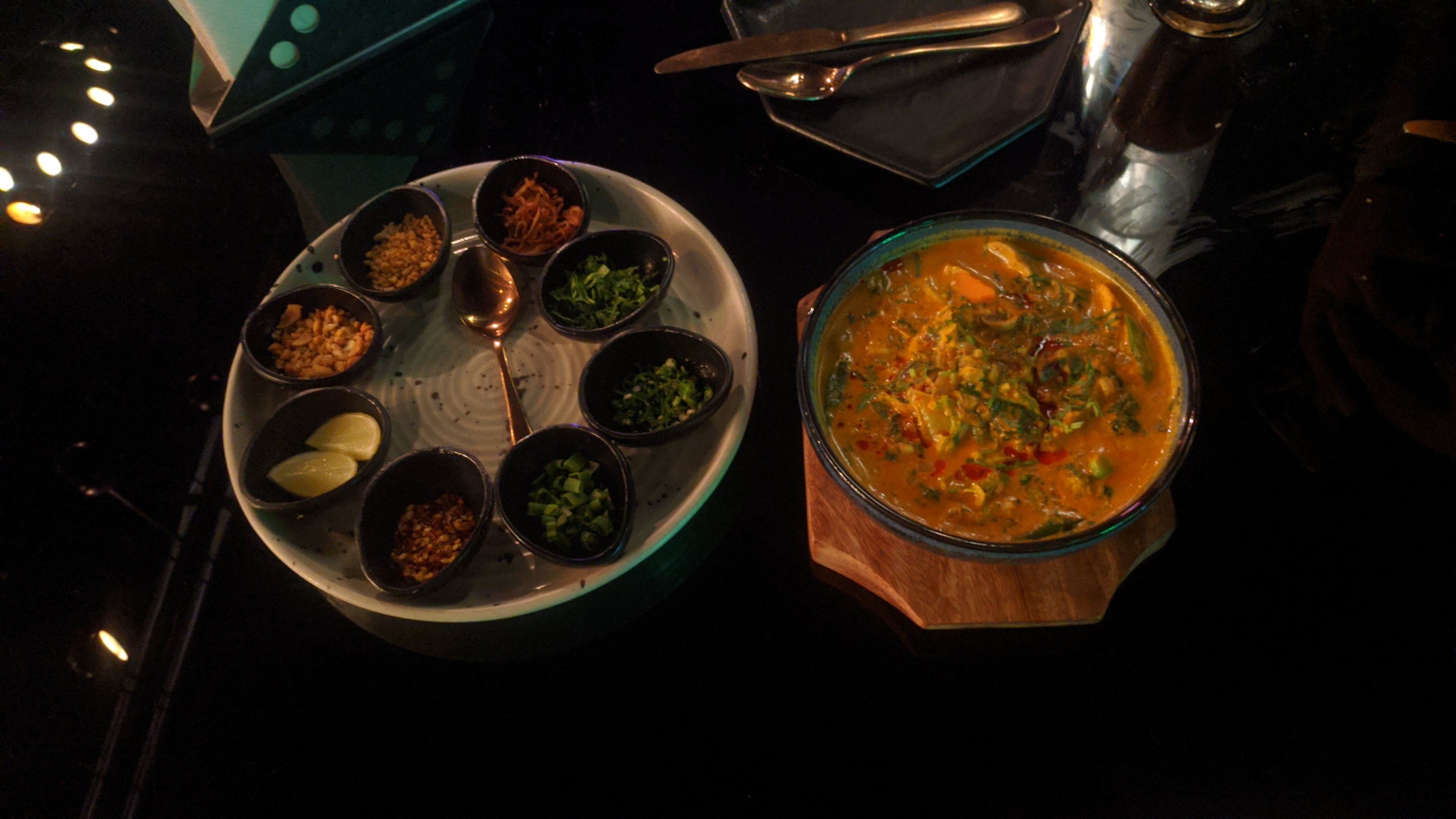 Liv special Khao suey : If you want to have noodles and want to have a soup + noodle and want a lot of veggies in it and then you want a lot of side things , and you like coconut in your curry,don’t think any further all you need is just a Khao suey soup. This is a complete meal in itself and one portion of Liv special Khao suey is good enough for two people.