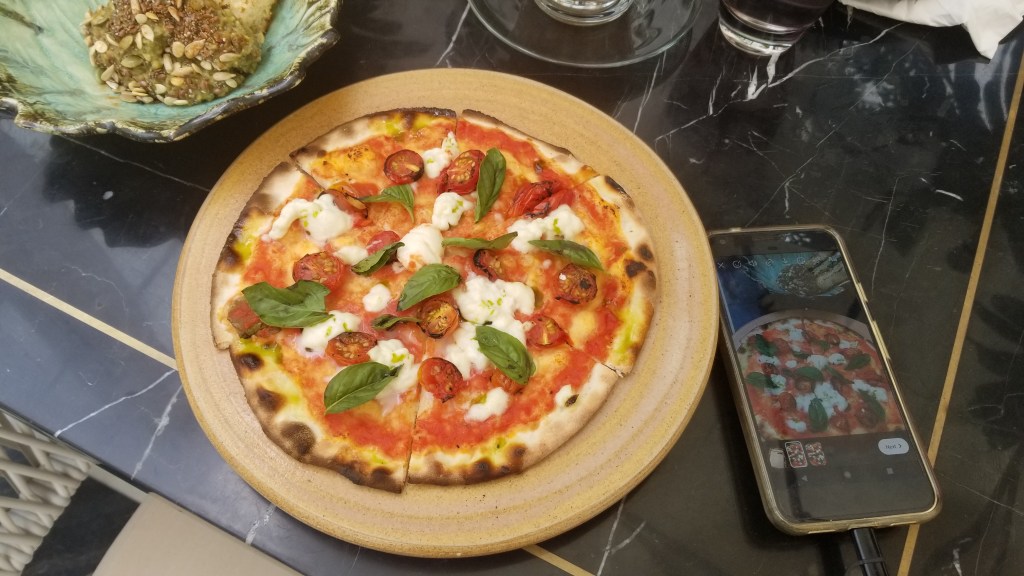 I am thin crust Pizza person with a thing for Boccocini & Basil so this one served me right with perfectly crisp thin crust and an amazing sauce with baby tomatoes.