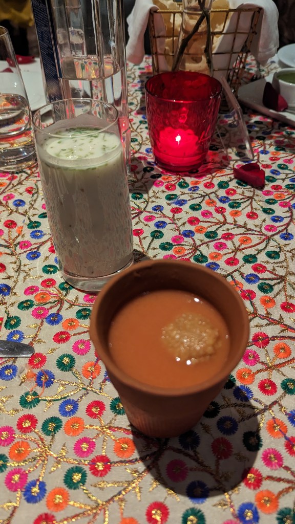 Our Drinks : If you scroll through the Ambarsariyan menu you will be pleasantly surprised to see the Desi drinks options from Pind da Chaach, chatti di Lassi, kaan ji Pakori, Banta ka Thanda , Mewe wali Thandai etc. We opted for Kaan ji that came with moong dal Pakori ( dumplings ) and was a perfect blend of spice and tanginess while the Pind da chaas had the local flavour of buttermilk. We loved the tang of mustard in the Kaanji and the moong dal dumpling soaked in Kaanji was outstanding.