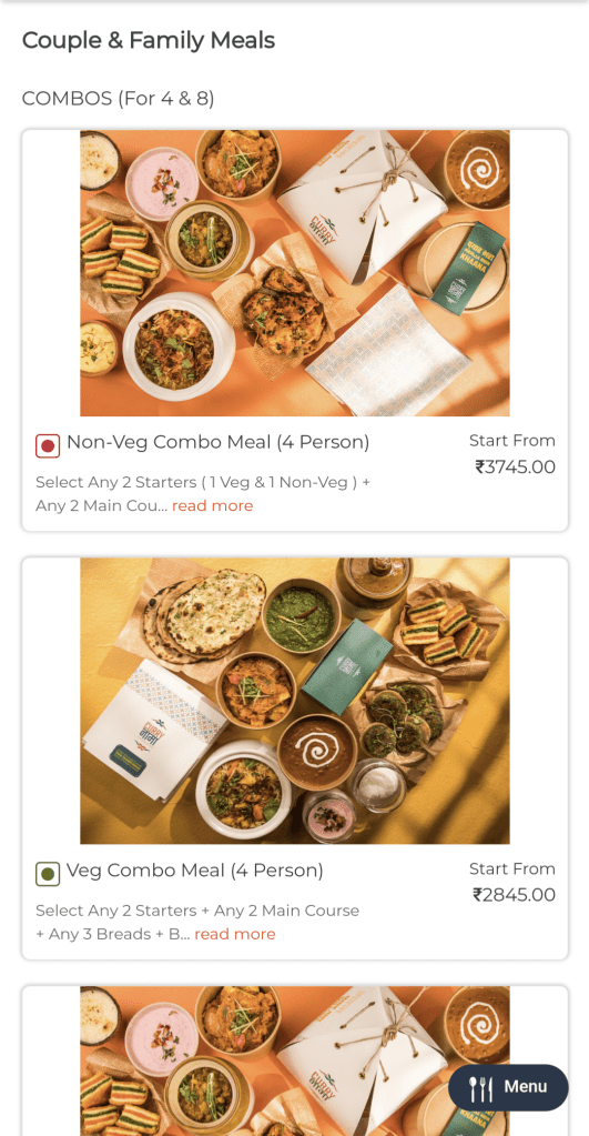 The best part is you don’t have to plan anything ,just order an hour before on Zomato or on their website by choosing a nearest delivery kitchen at https://currynama.com/orders/menu and if you are eternally confused on the fact what & How much to order like me , then the pre created combo really comes to your rescue and offers you ease of order & choice options in Veg & Non Veg, not only that the combos are crafted well to take care of starters , main course & Dessert so just a few clicks and you are done.