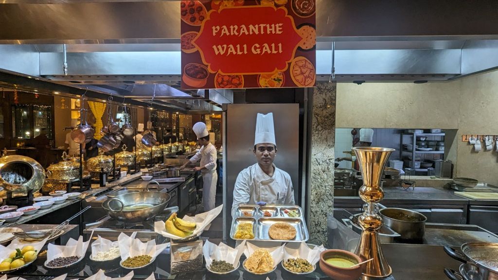 roti, sheerman, and khandhari roti, heavenly Daulat ki Chaat, authentic Jama Masjid ke NonVeg Kabab, and the savory offerings of Parathe Wali Gali. Indulge in the tantalizing chaat specialties of Chatori Delhi Ka Jayaka, alongside traditional delicacies such as Biryani by plate, Korma, and Nihari. Experience the ambiance of Old Delhi with our intricately designed themed decor that transports you back in time.