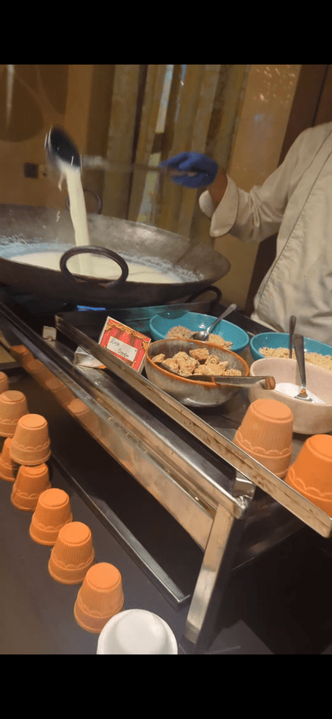 Caprisoka. And if you are a teatottler like me be delighted to see the kullad wala dhoodh in a live counter done in street style and warms me you up in the chilli winter evening in Delhi